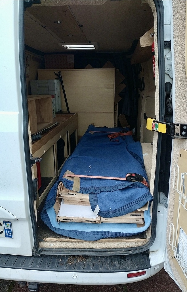 Chargement et pose avec un coup de main bienvenu de mes clients pour le déchargement.