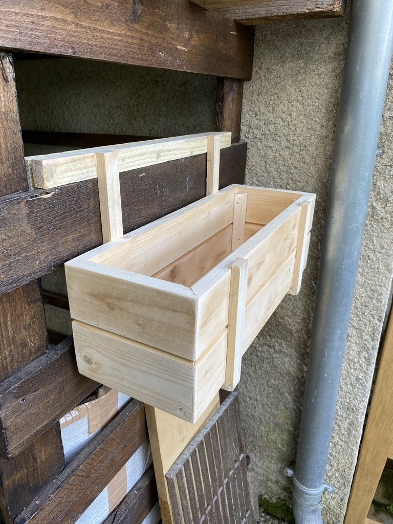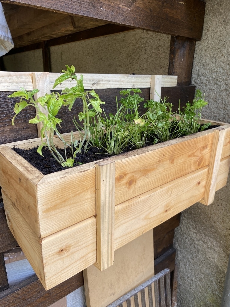 Histoire de bricoler un peu, j'avais fait cette petite jardinière avec un reste de lame à volet ; pratique pour mettre des herbes comme le persil ou le basilic ; sans avoir à aller au potager .