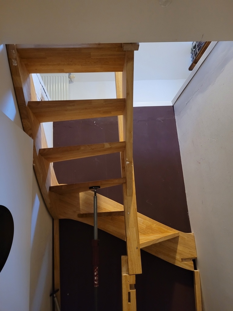 A noter l'emmarchement (largeur disponible des marches) très réduit (~50 cm), bien en deçà des recommandations (80cm min) mais le client en a été averti dès la remise de prix.