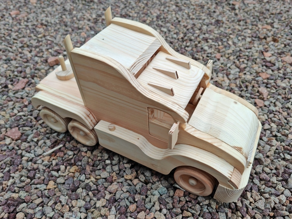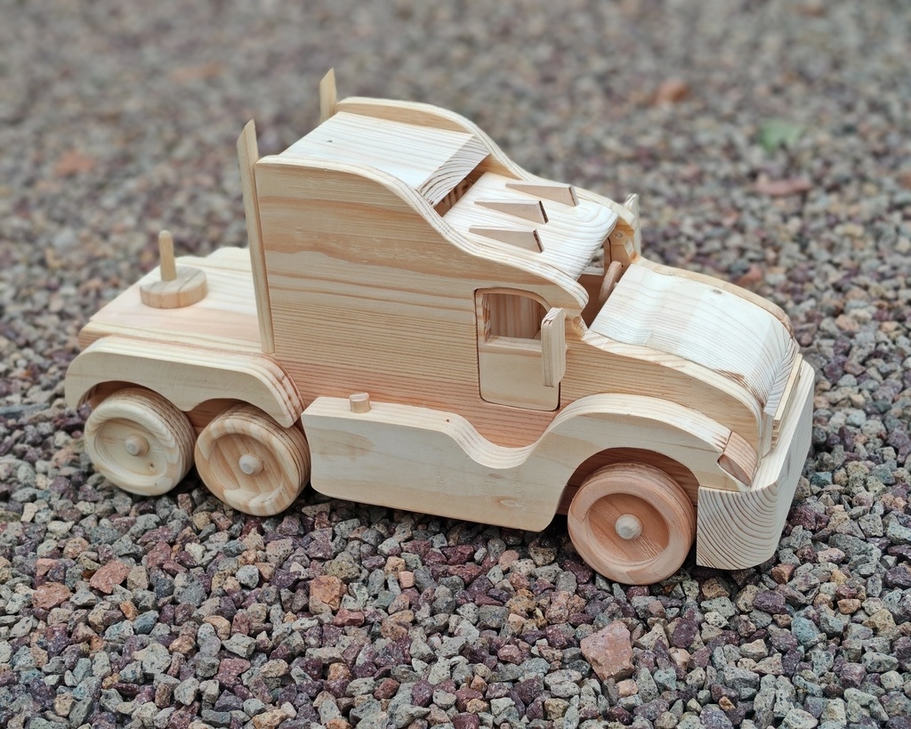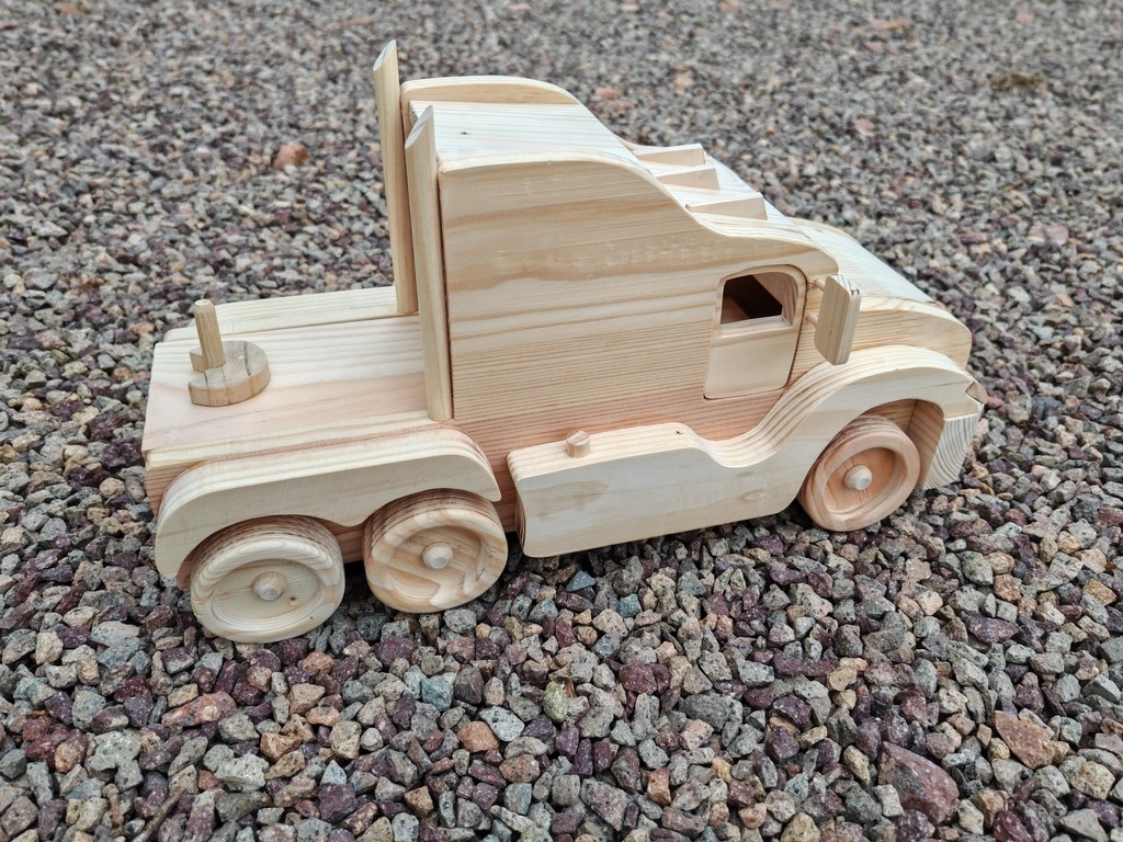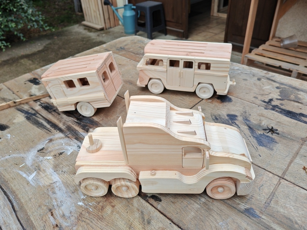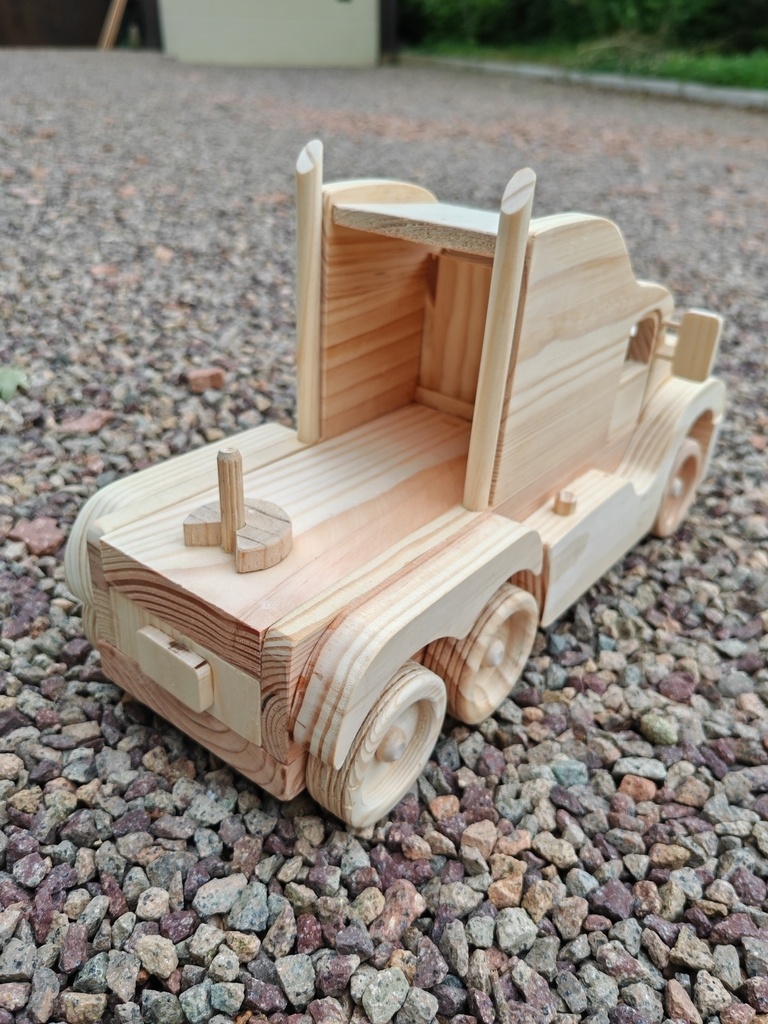 bonjour , voici un camion tout simple en bois de palette , dimensions : L 30 X H 18 X P 13 cm bientôt il aura sa remorque bonne journée