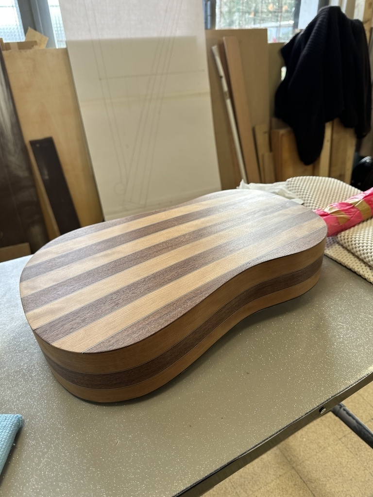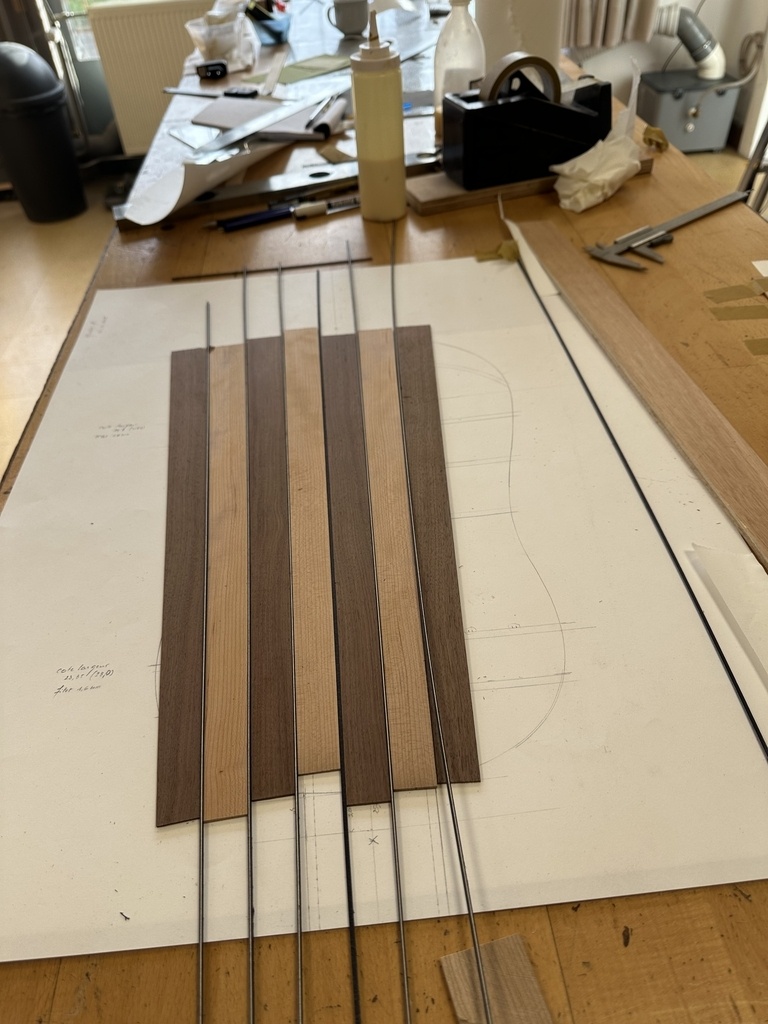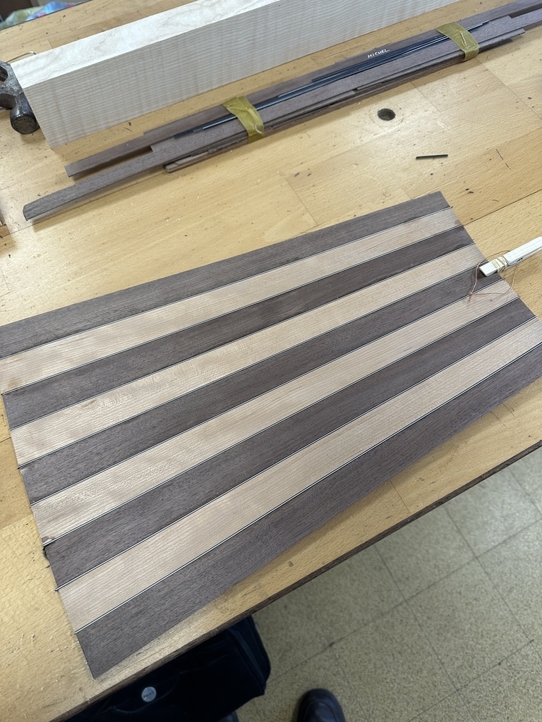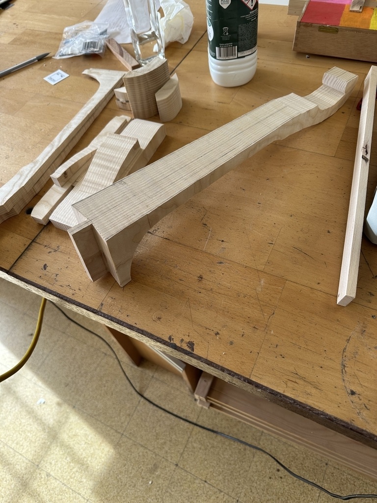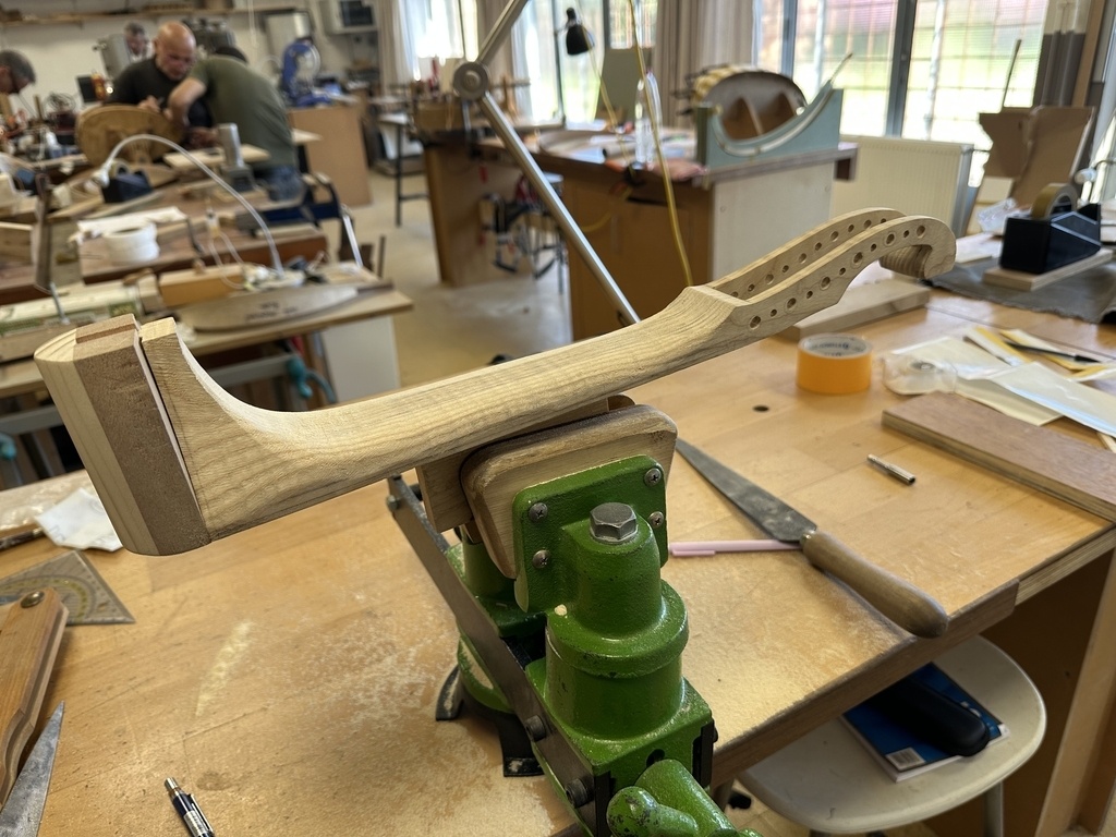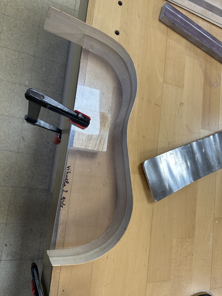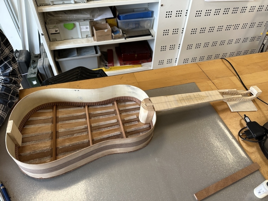 Comme juste à côté de notre atelier de marionnettes, s'est installé un atelier de lutherie, je ne voulais pas mourir idiot et j'ai voulu savoir comment on fabriquait un instrument à cordes grattées. Mes mentors, deux artistes exceptionnels, Renzo SALVADOR et Aurélien GOUX, m'ont proposé de réaliser une guitare de la Renaissance (Vihuela de mano) alliant de nombreuses techniques de lutherie et d'essences de bois (noyer, merisier, ébène, érable ondé, frêne ondé, ...) mais aussi de la sculpture. Je joins quelques photos des étapes de cette réalisation, une grande première pour moi.