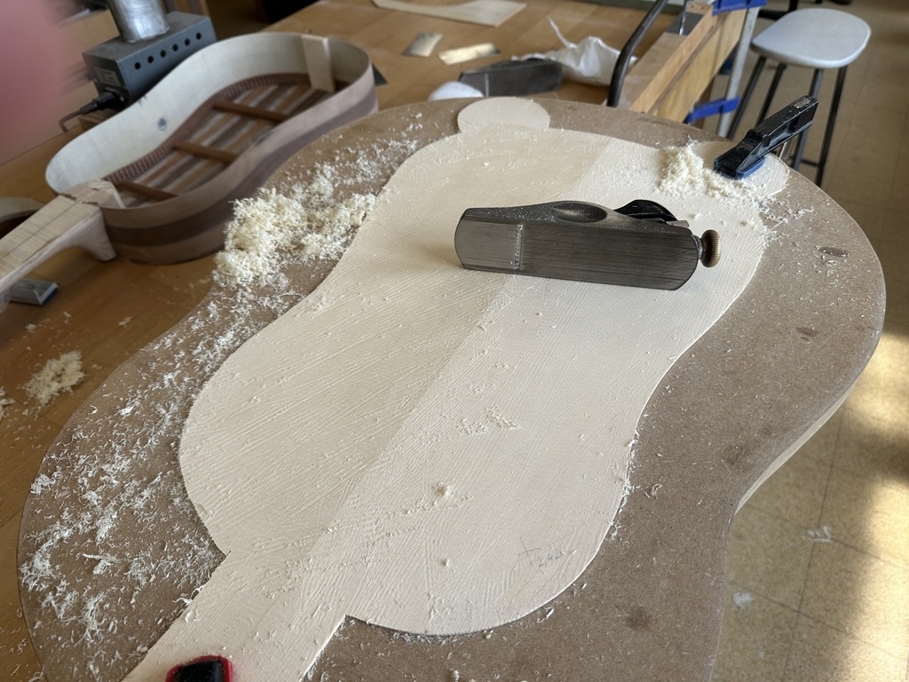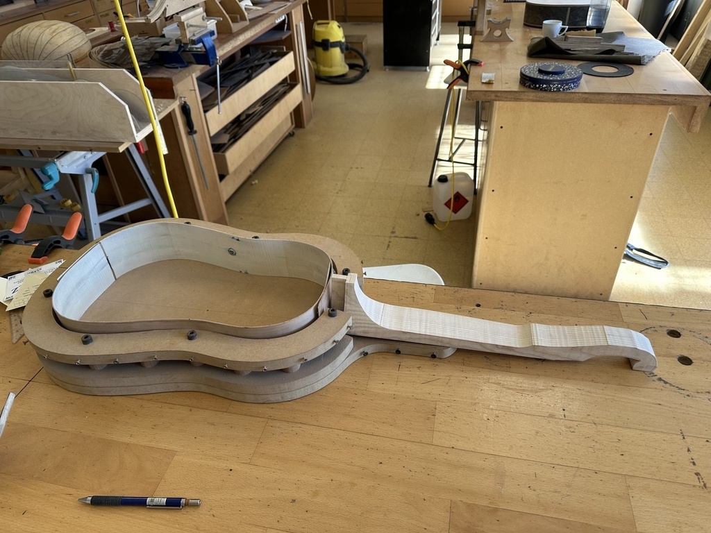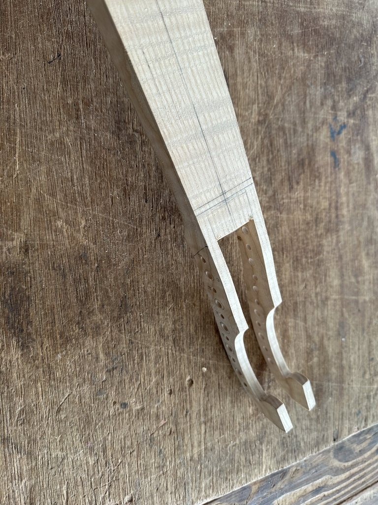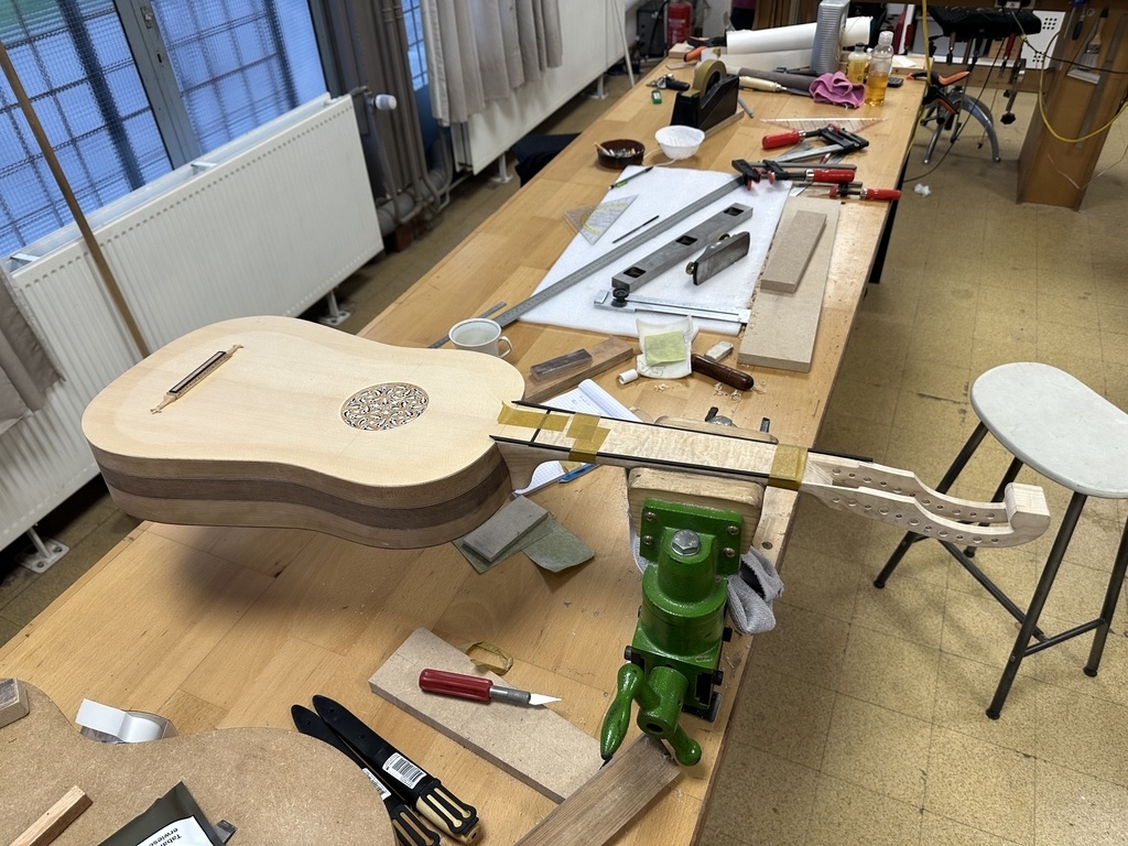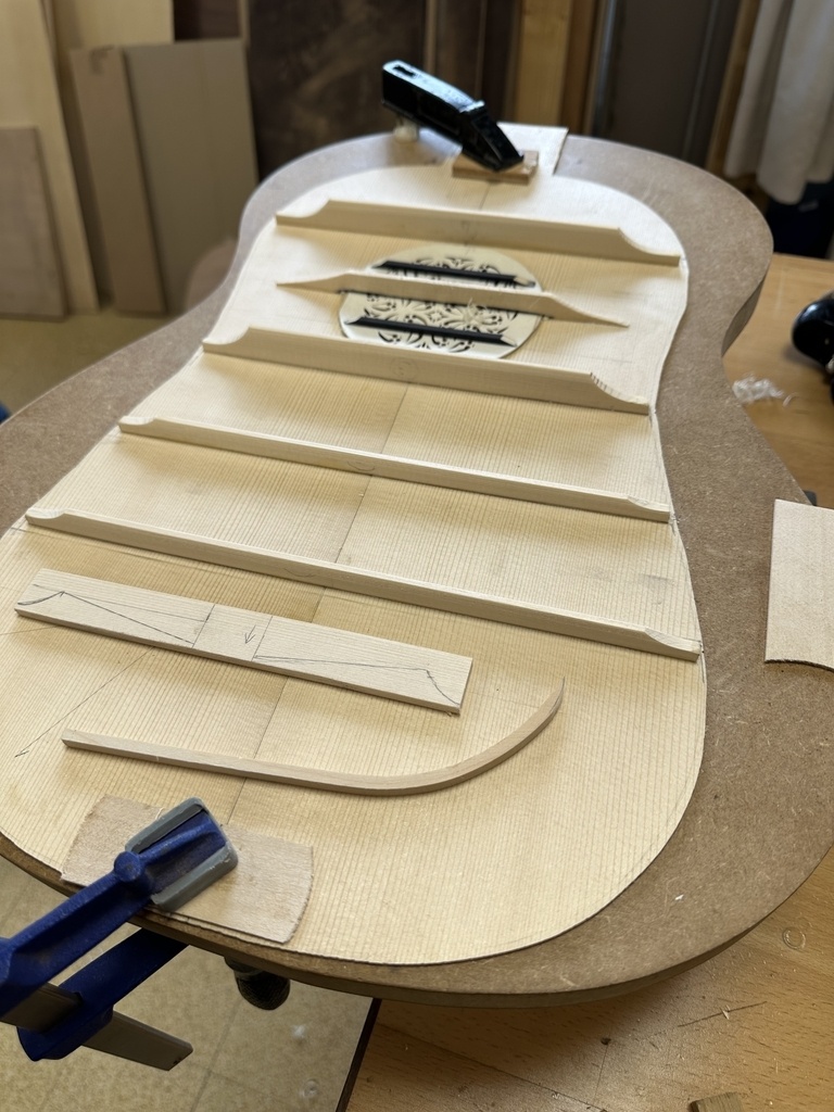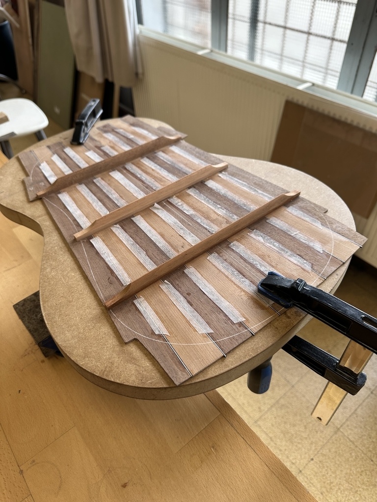 Comme juste à côté de notre atelier de marionnettes, s'est installé un atelier de lutherie, je ne voulais pas mourir idiot et j'ai voulu savoir comment on fabriquait un instrument à cordes grattées. Mes mentors, deux artistes exceptionnels, Renzo SALVADOR et Aurélien GOUX, m'ont proposé de réaliser une guitare de la Renaissance (Vihuela de mano) alliant de nombreuses techniques de lutherie et d'essences de bois (noyer, merisier, ébène, érable ondé, frêne ondé, ...) mais aussi de la sculpture. Je joins quelques photos des étapes de cette réalisation, une grande première pour moi.