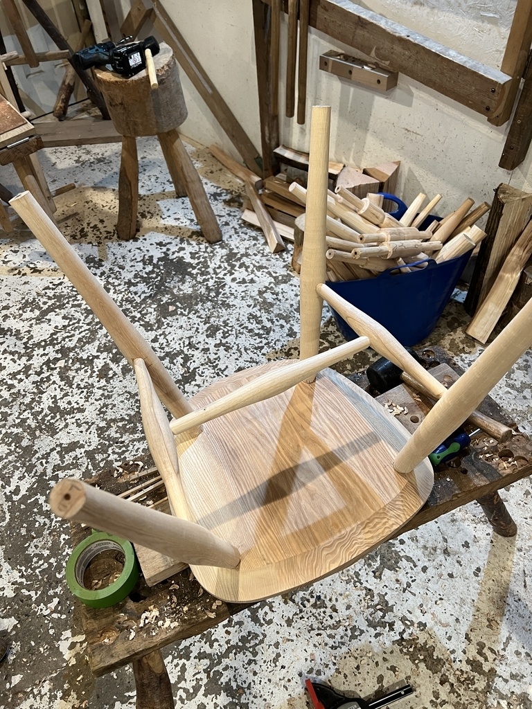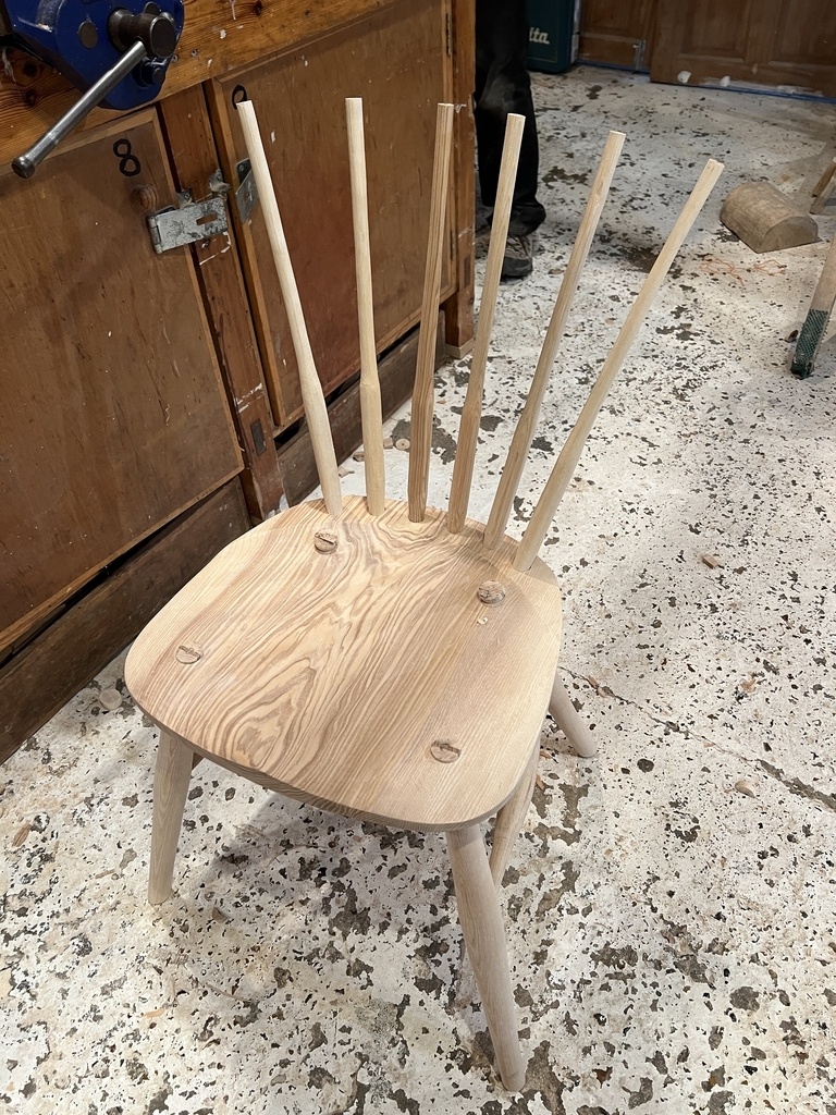 Siège et dossier en hêtre, le reste en frêne encore vert (abattu un mois plus tôt).