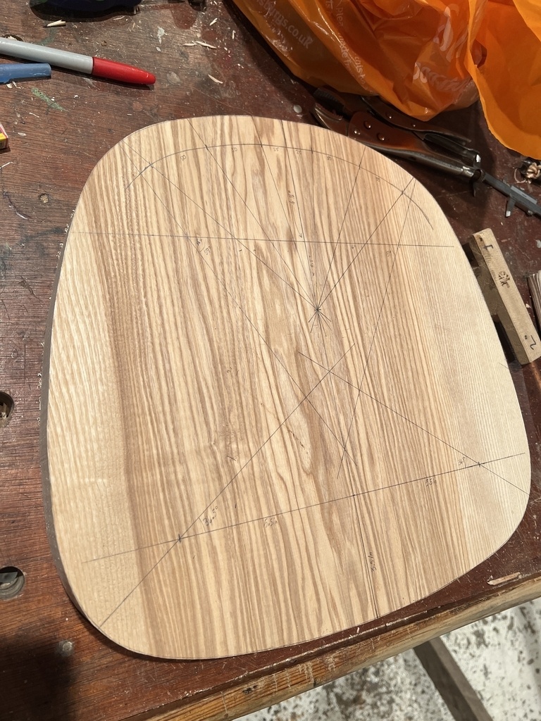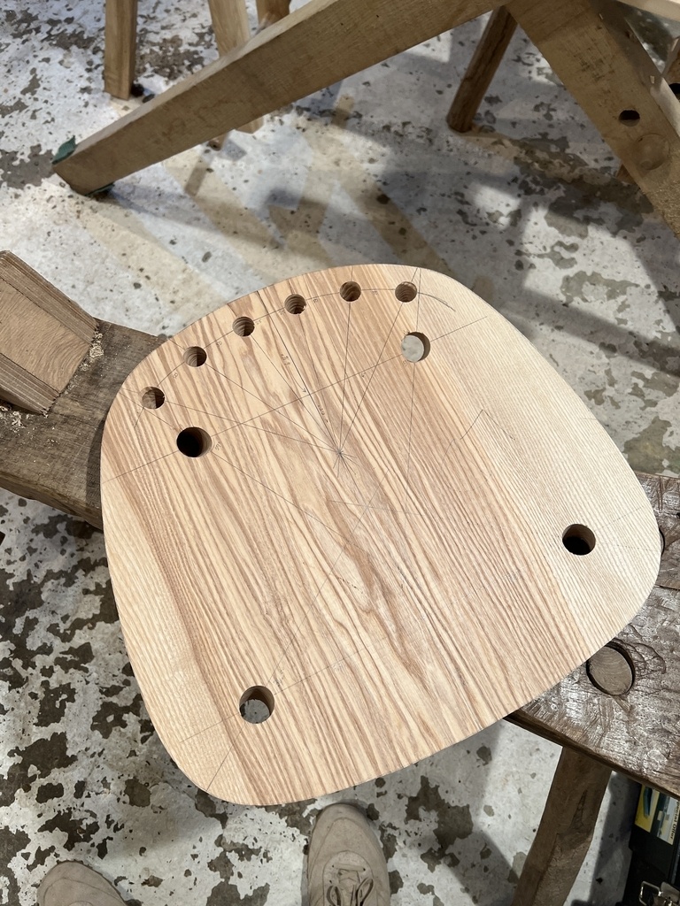 La partie la plus éprouvante: le siège est découpé et marqué, puis l'assise est grossièrement creusée à l'herminette puis finie à la wastringue à semelle galbée. Impossible d'utiliser le rabot sur des surfaces aussi courbées mais j'ai beaucoup utilisé les racloirs courbes.