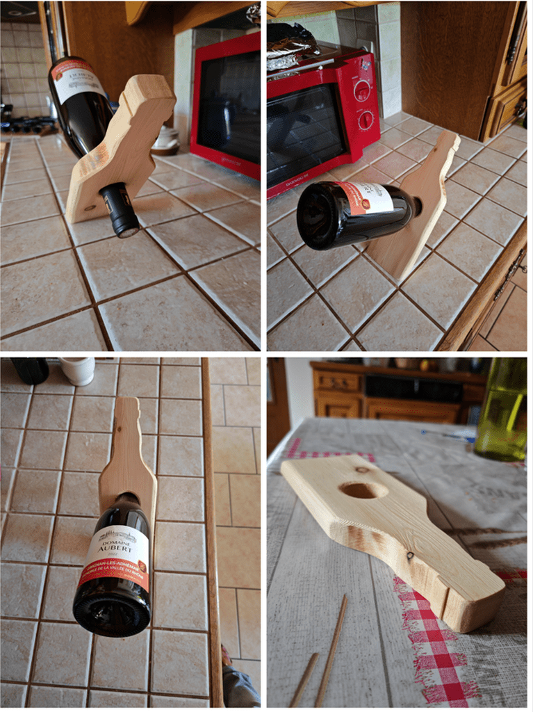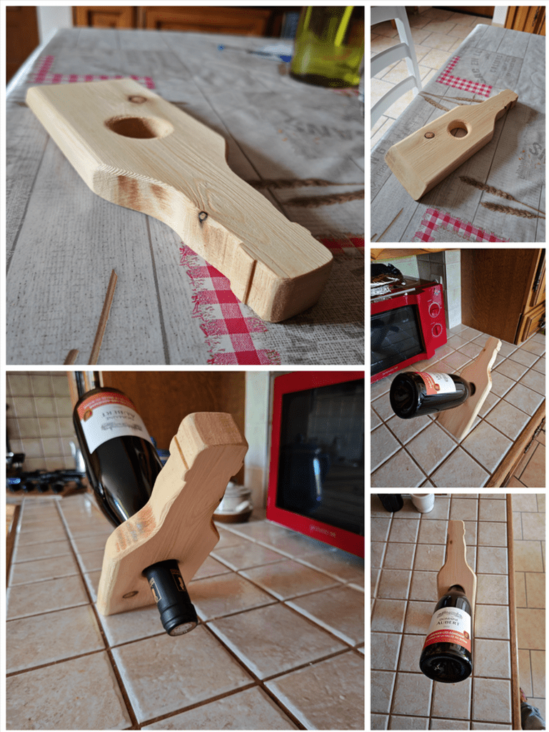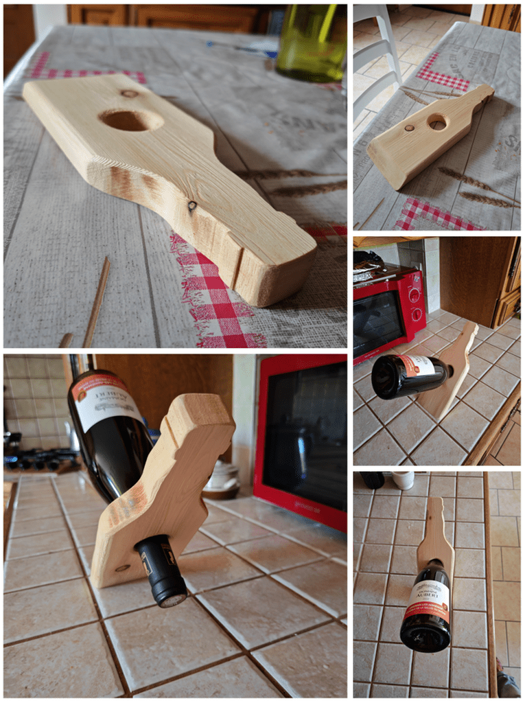 bonjour a tous , voici un support en bois pour bouteille en parfait équilibre a offrir ou pour rigolé entre soirée de potes