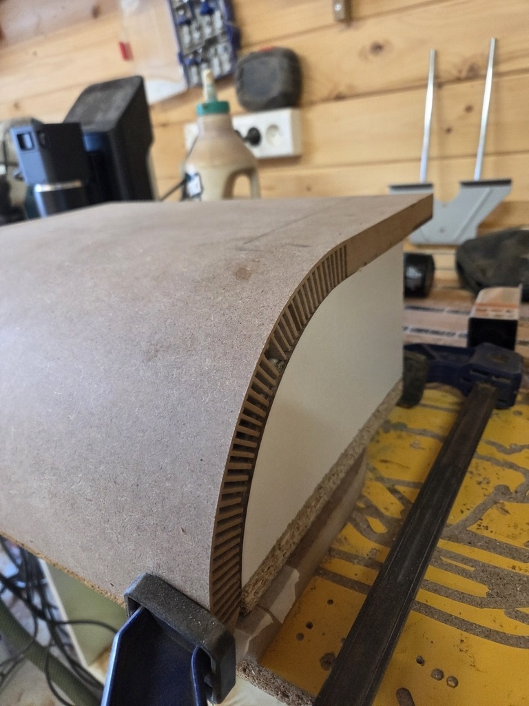 Petit cintrage du médium, mise en couleur avec la gamme Unikalo O2lak qui est décidément LA peinture à utiliser pour ce type de mobilier.
