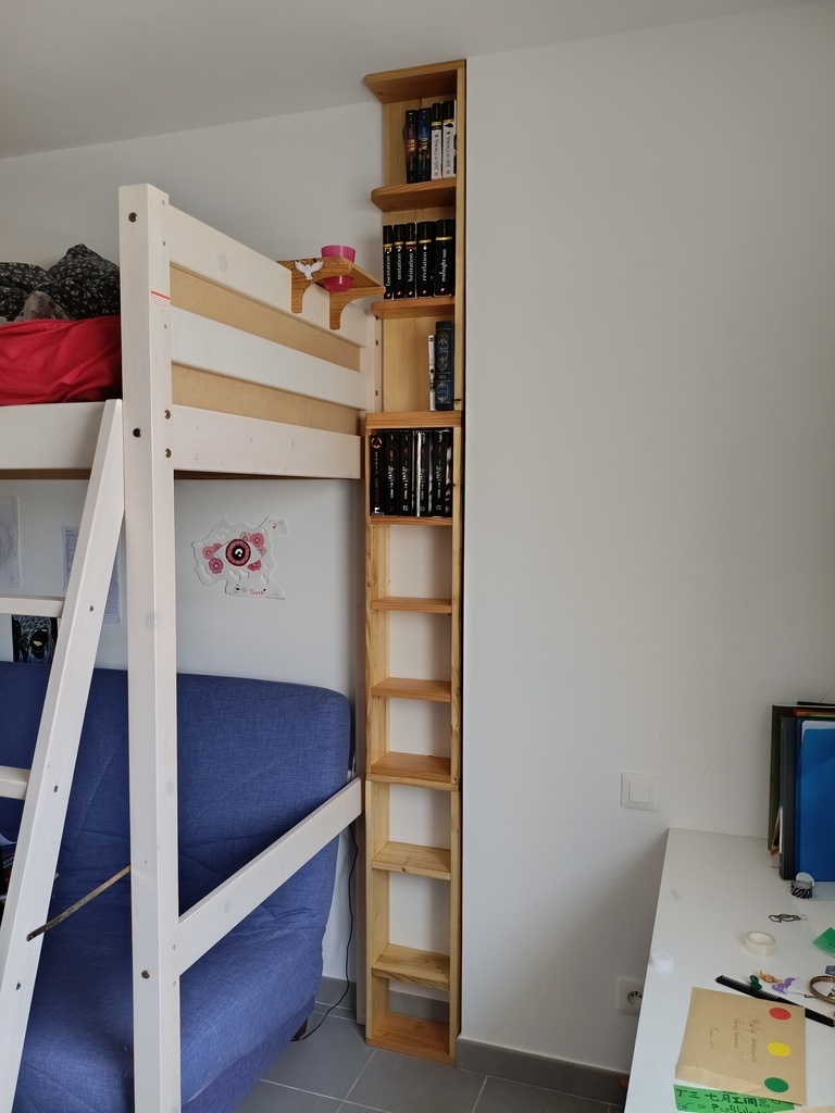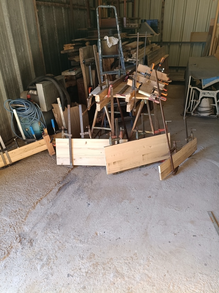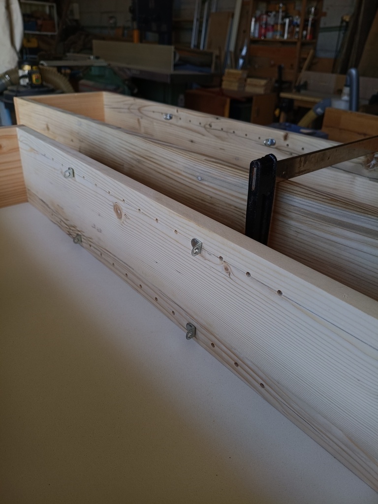 Colonne en trois morceaux tres classique mais qui rempli bien son office. Tous en recup donc beaucoup de collage et de rabotage. Les deux premiers caissons on des étagères sur taquet (lr32) le reste est fixe