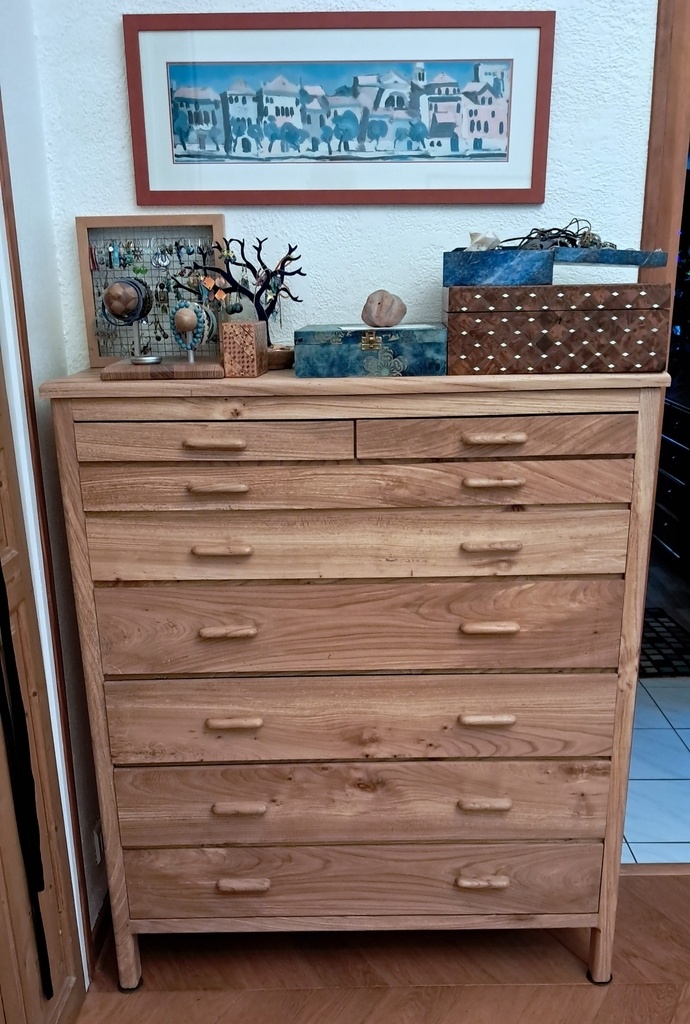 Il y a 5 ans je faisais notre lit avec un joli stock d'orme racheté à un particulier, dans la foulée j'ai pu aussi faire les tables de nuit, et encore a-t-il fallu faire les pieds en chêne faute de matière.