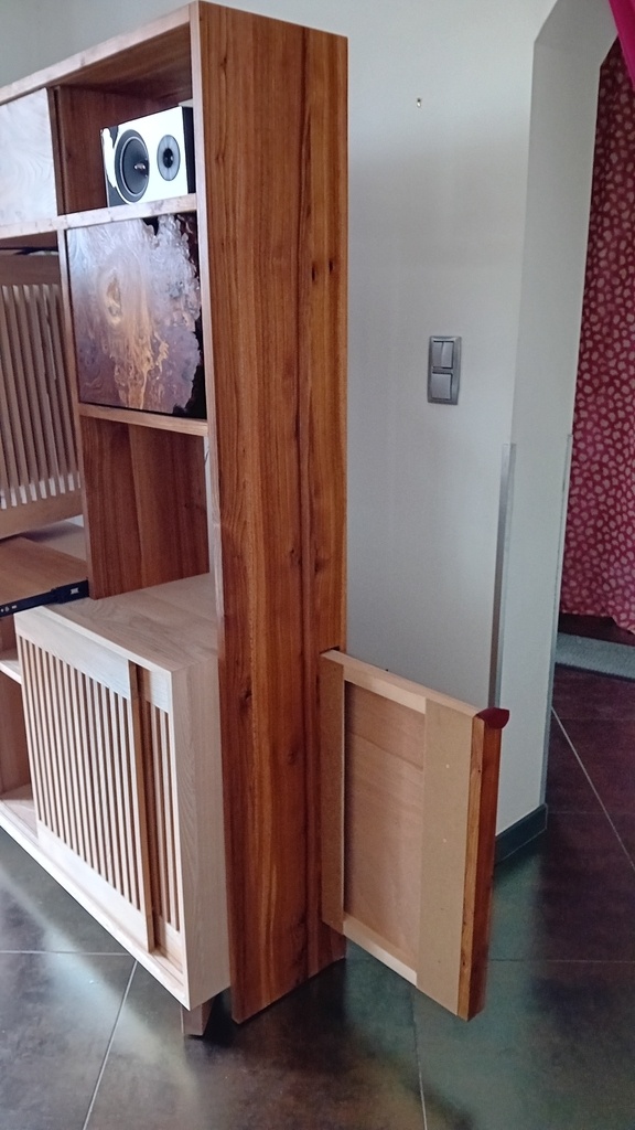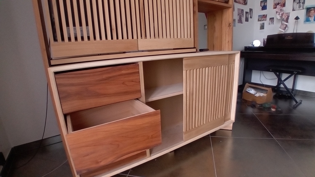 Voici un meuble qui m'a généré un peu de réflexions! la commande était un meuble de Tv dont le téléviseur doit pouvoir disparaitre.
