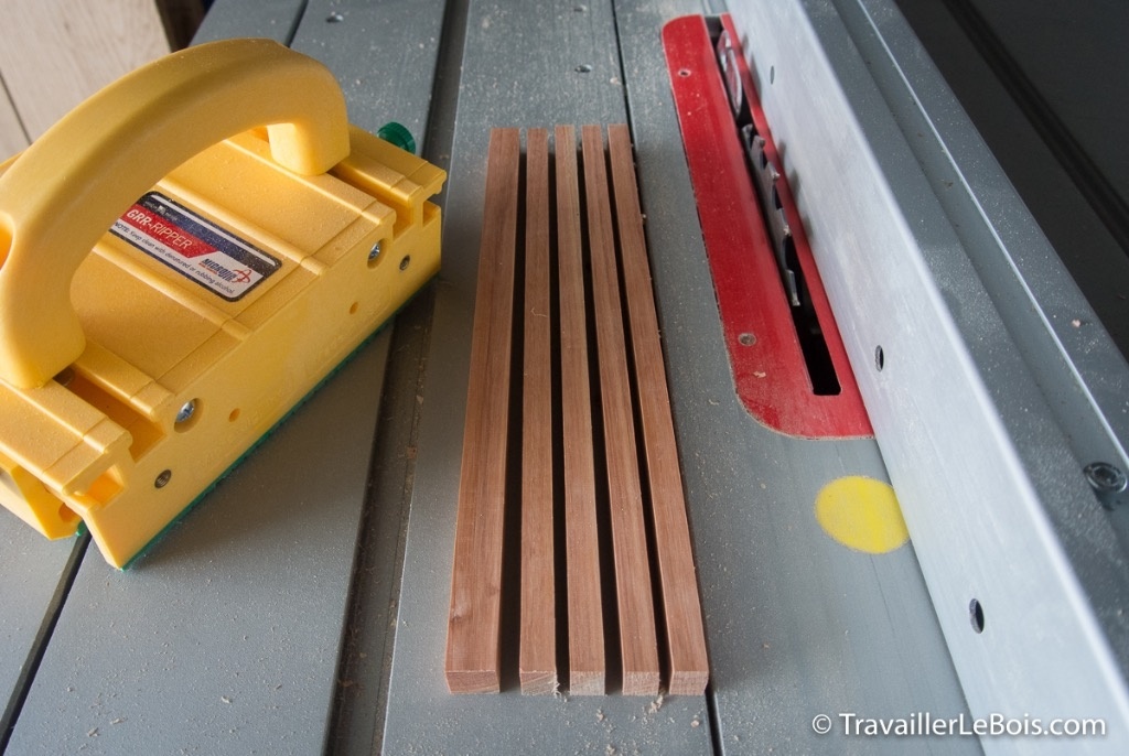 Les planches ont été rabotées et coupées à la scie sur table puis à la scie à onglets.