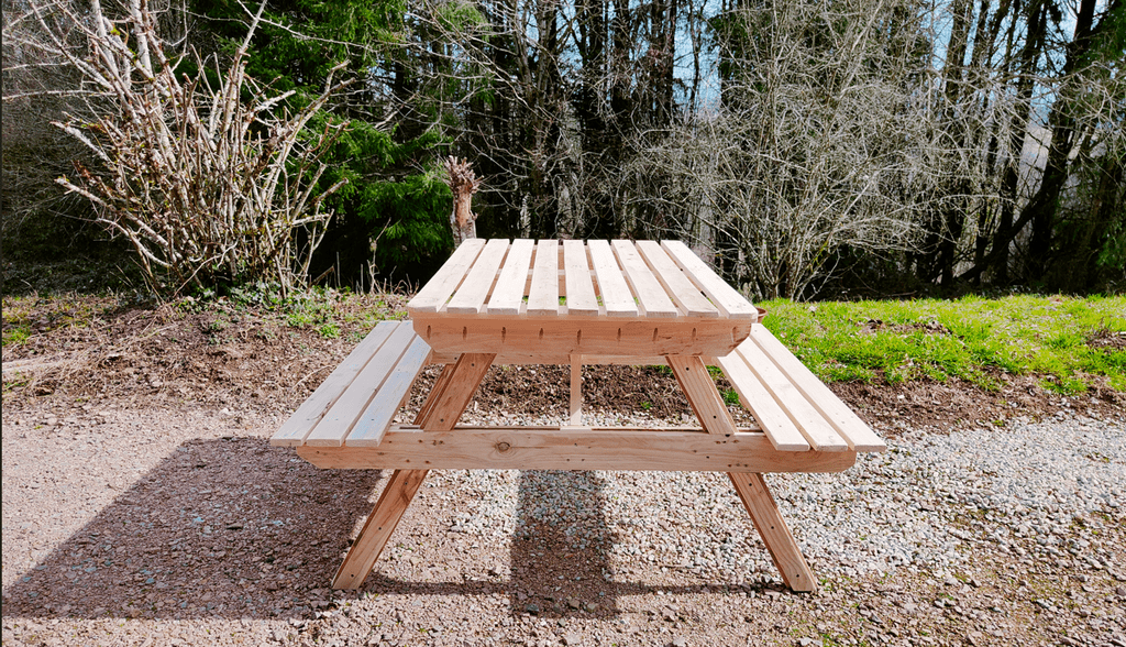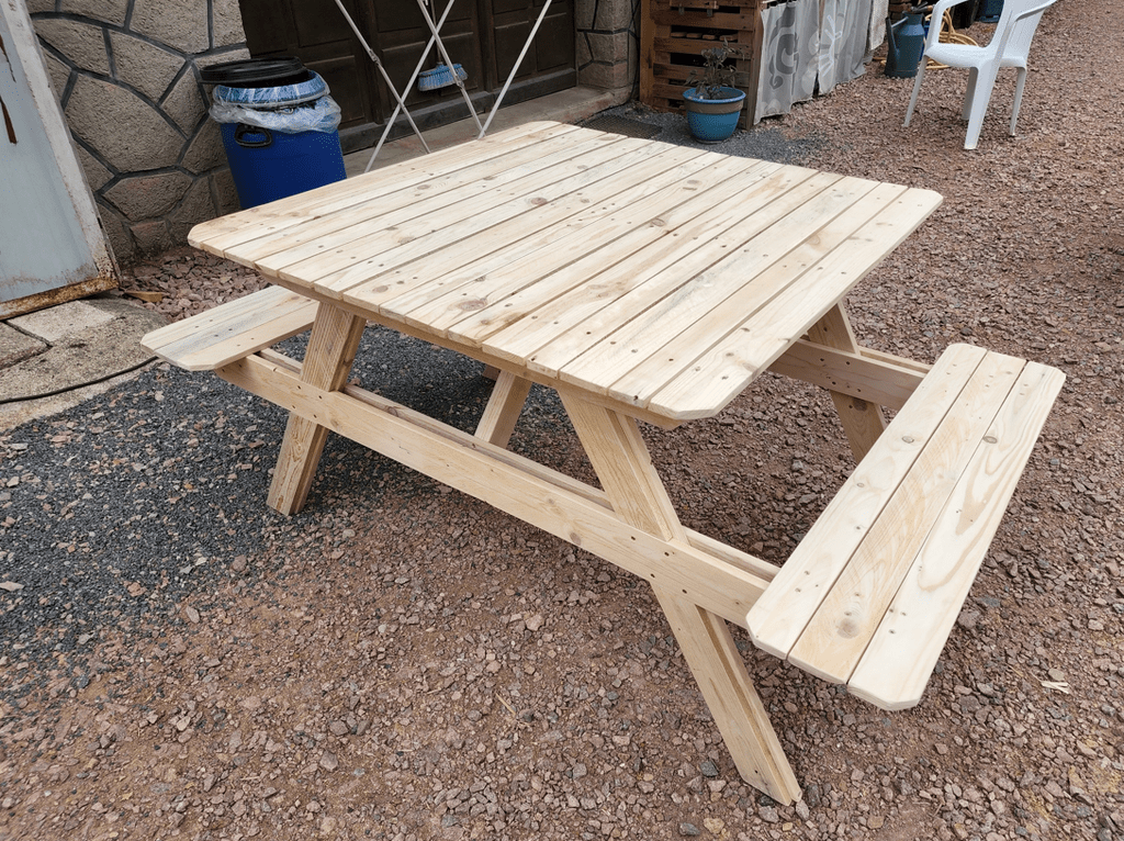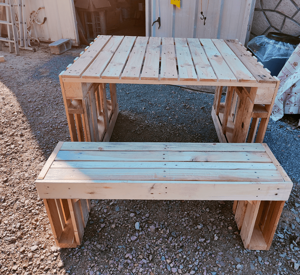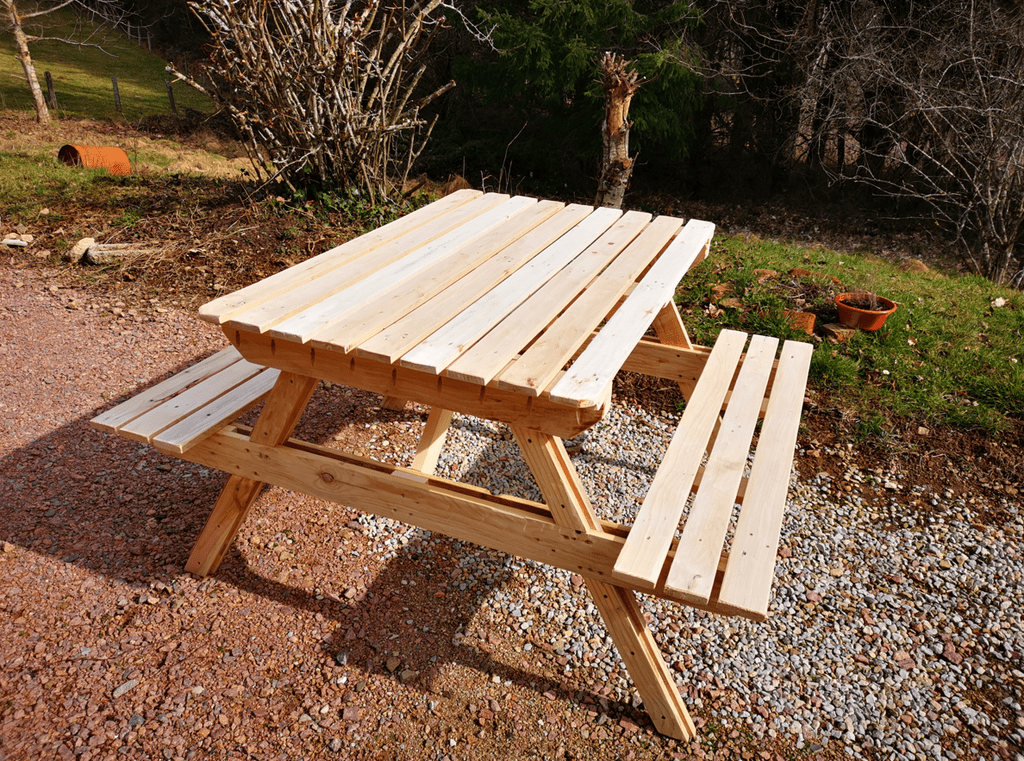 bonjour , voici différentes tables de jardin en bois de palette pour un ami maraicher pour sa clientèles bonne journée