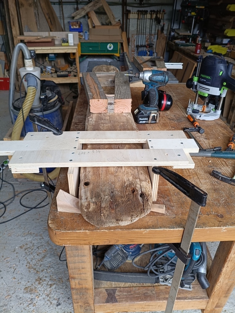 Projet simple, rustique mais qui m'a beaucoup amusé. La création de gabarits pour l'incrustation de pièces et la défonce d'une rainure pour les pieds sur une pièce pas plane était très inscructive.