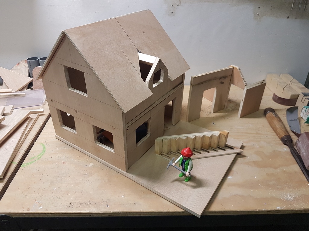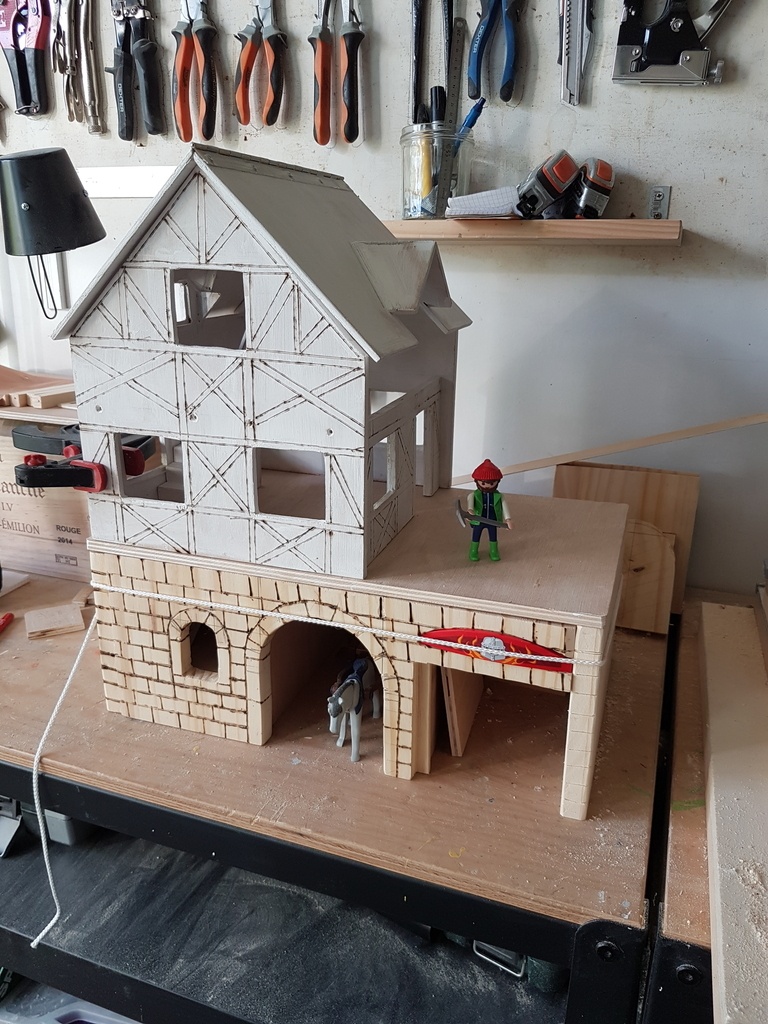 Bâtiment démontable sur 3 étages en pin et contreplaqué.