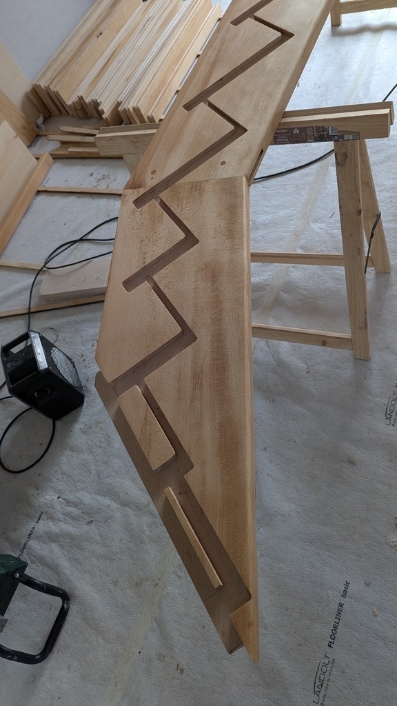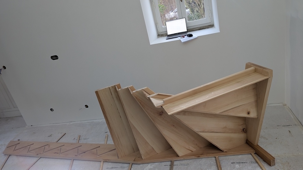 Ça a été une belle aventure a réitérée, j'en profite pour remercier et conseiller Christophe 'boisdeshuiles' qui après m'avoir dépanné très cordialement m'a sacrément aider en me proposant l'impression échelle 1 des épures de l'escalier, dans des délais incroyable, un stress énorme en moins!