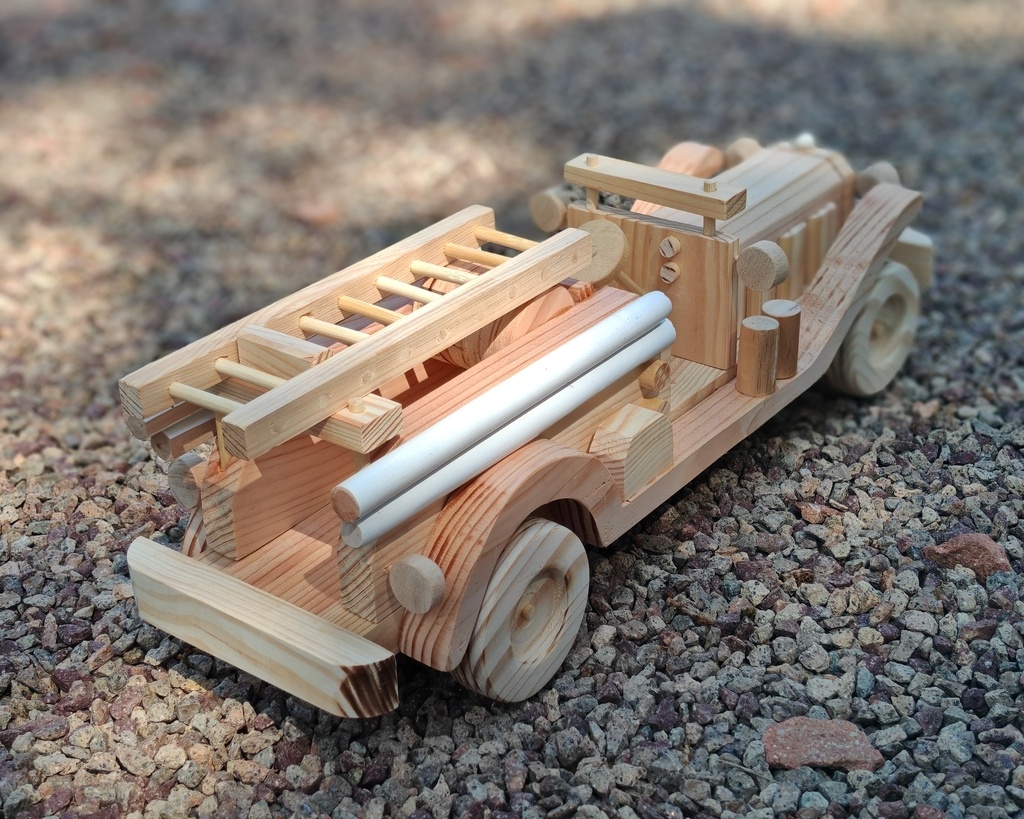 bonjour , voici un camion pompier américain la france des années 1932 en bois de palettedimensions 41 x 12 x 12 cmbonne soirée