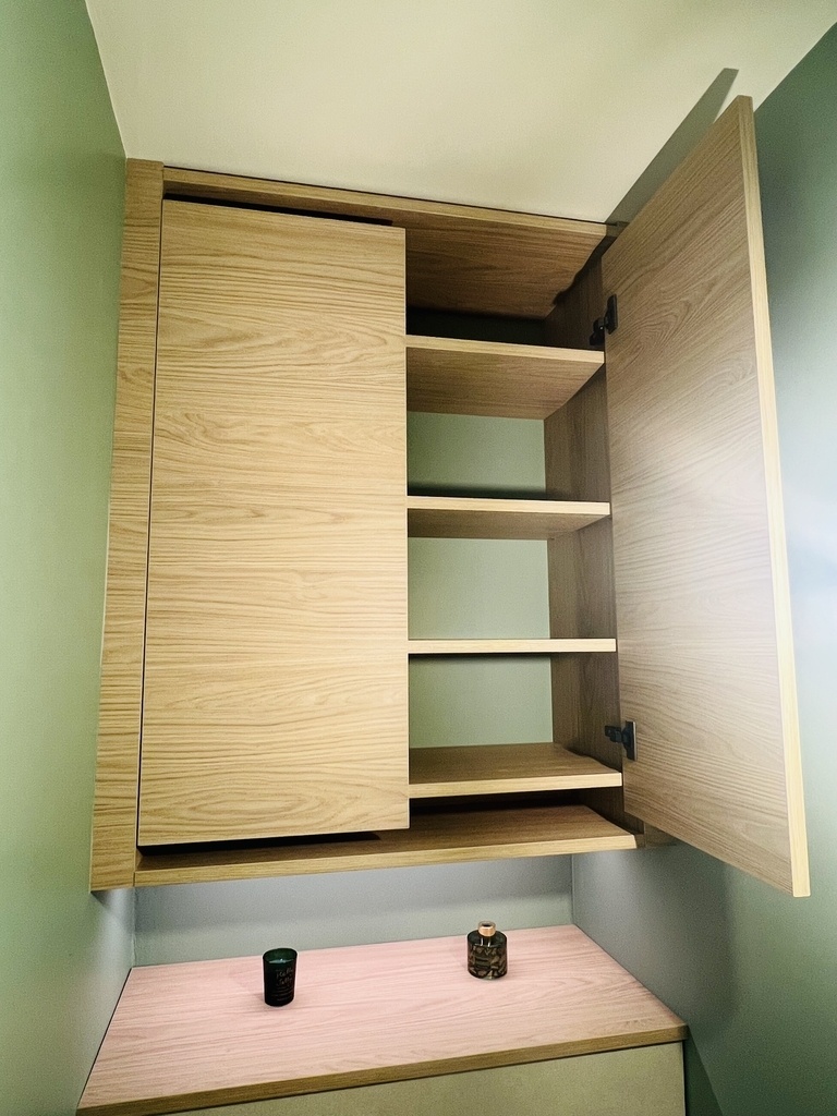 Rénovation complète de WC a qui il fallait évidement son meuble de rangement.