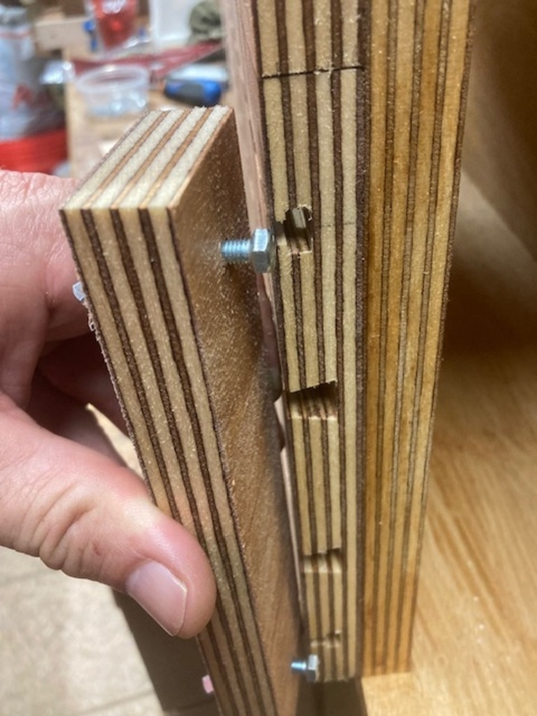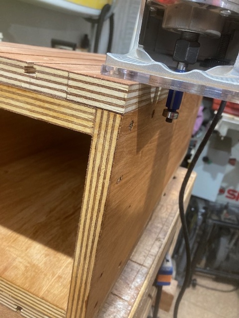 Les martyrs de rechange sont légèrement plus grands et dépassent donc un peu en haut. Une fois installés je suis passé avec une fraise a affleurer pour bien mettre au niveau du haut de la caisse.