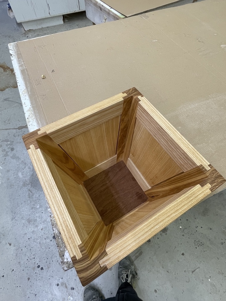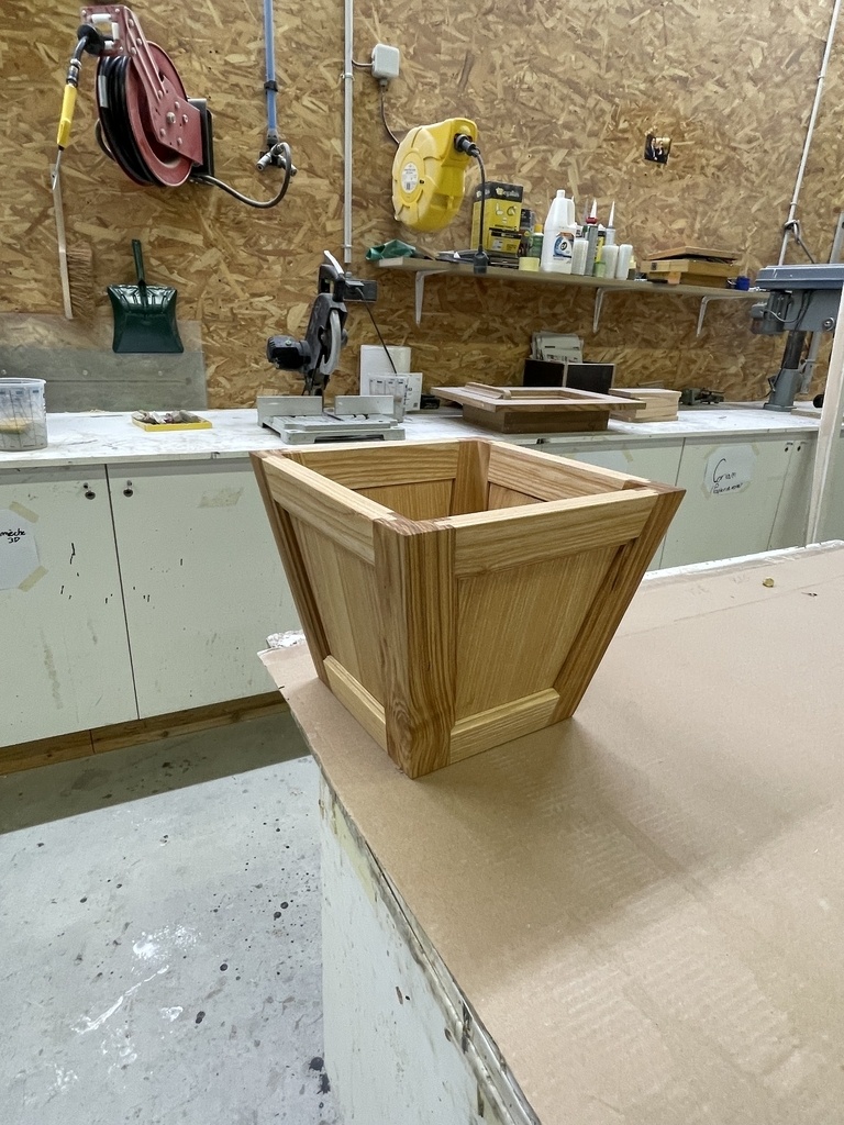 Bonjour à tous,voici un pot de fleur en frêne réalisé dans le cadre de mon apprentissage de l’aretier. Le fond est démontable et sera percé au moment de la mise en place de la bâche qui séparera la terre du frêne.