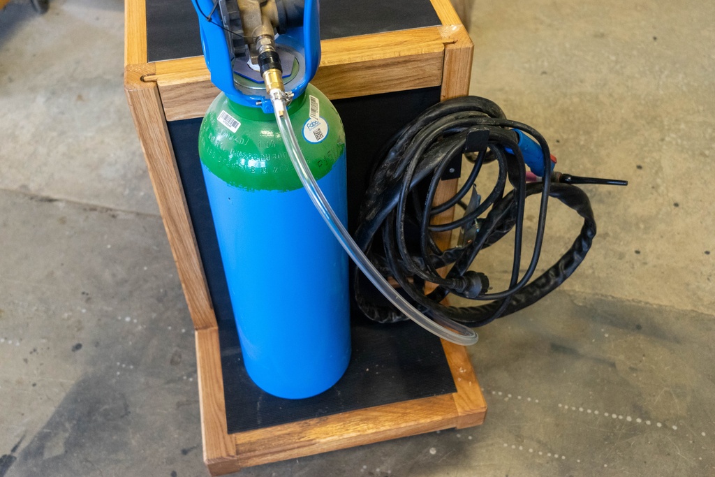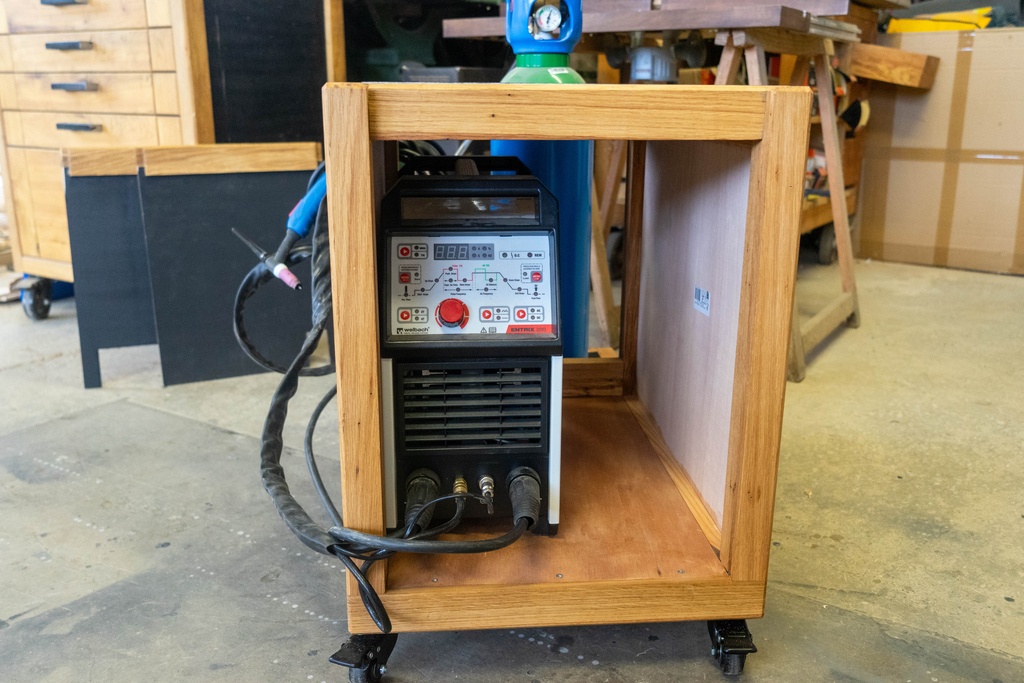 - Meuble sur roulette avec support pour la bouteille de gaz où je n'ai qu'à brancher la prise secteur pour pouvoir souder,