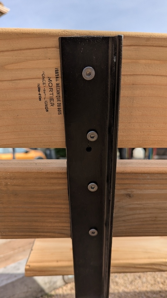 Je suis parti sur des lames de terrasse en douglas pour avoir la bonne section pour l'assise.