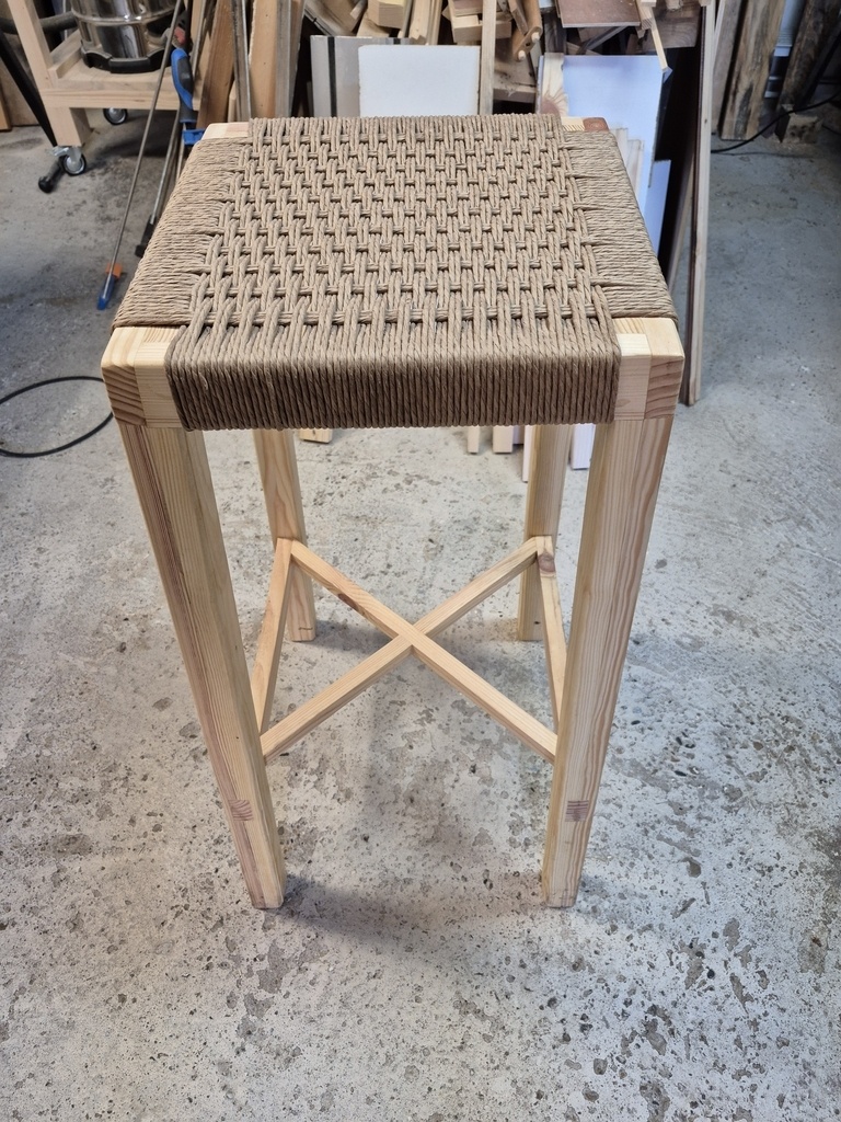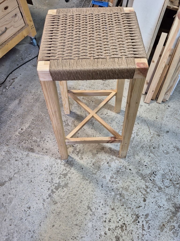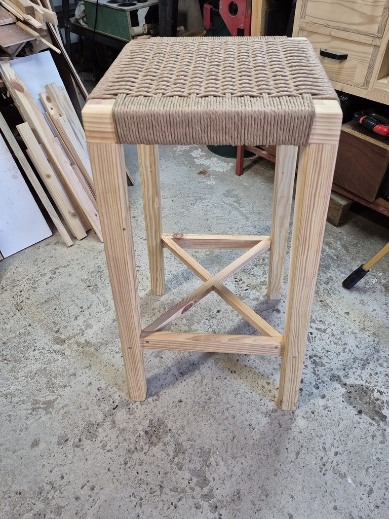 mon tabouret d atelier en cannage danois fait avec du bois de palette.