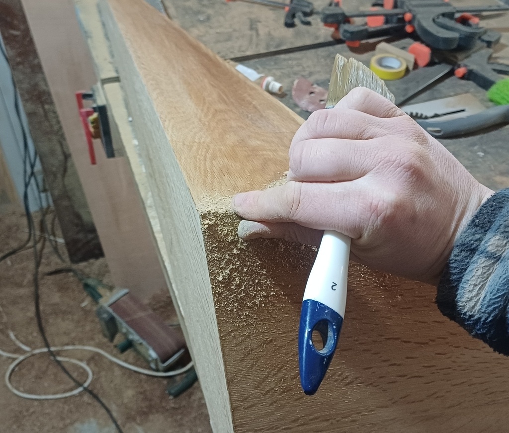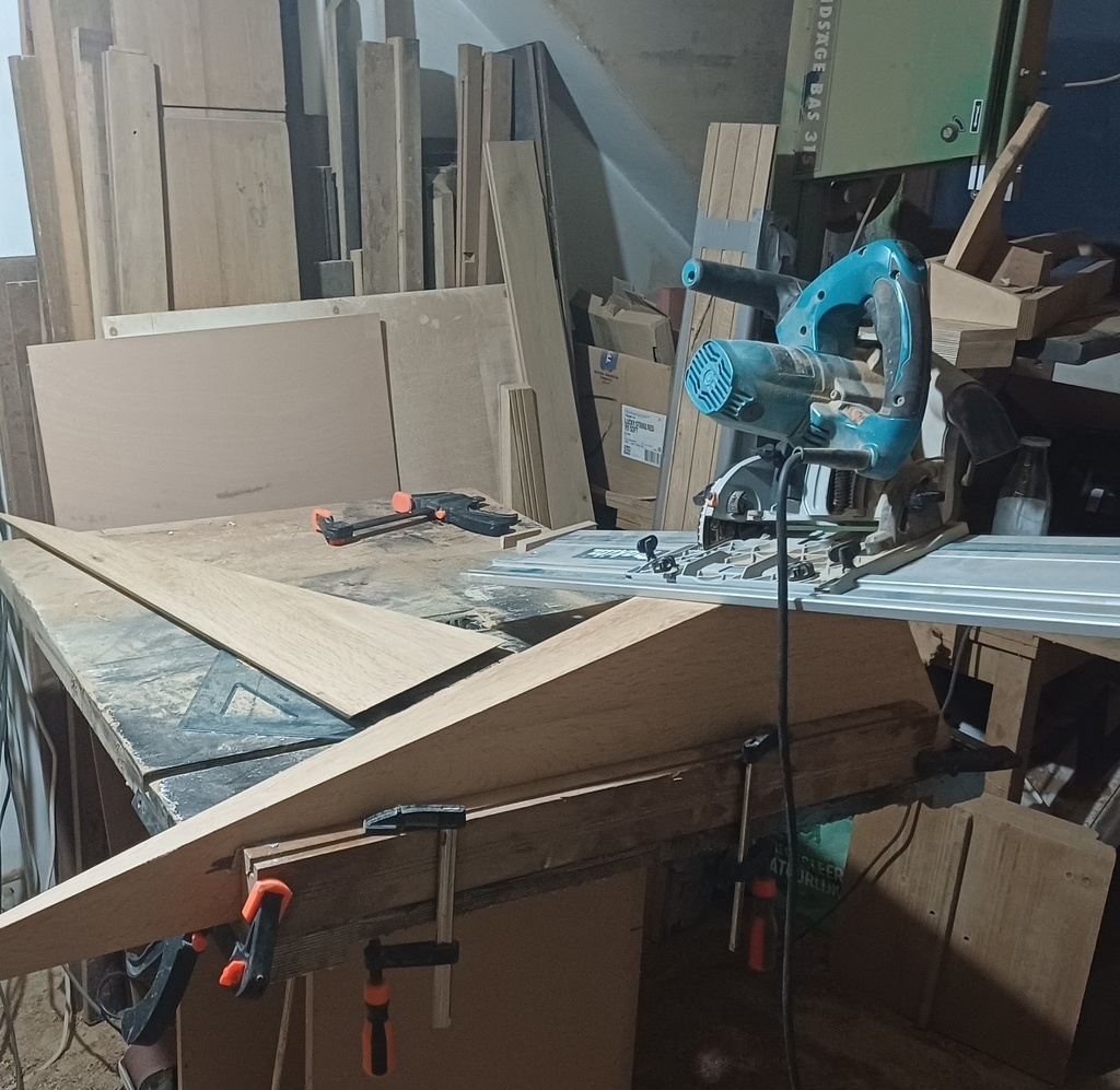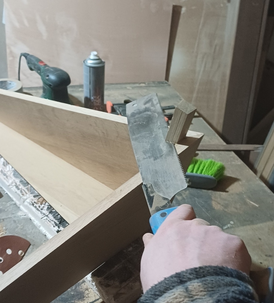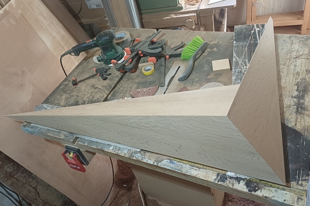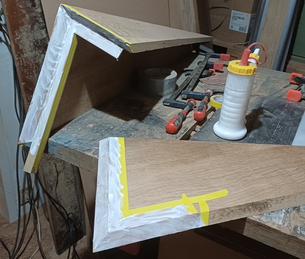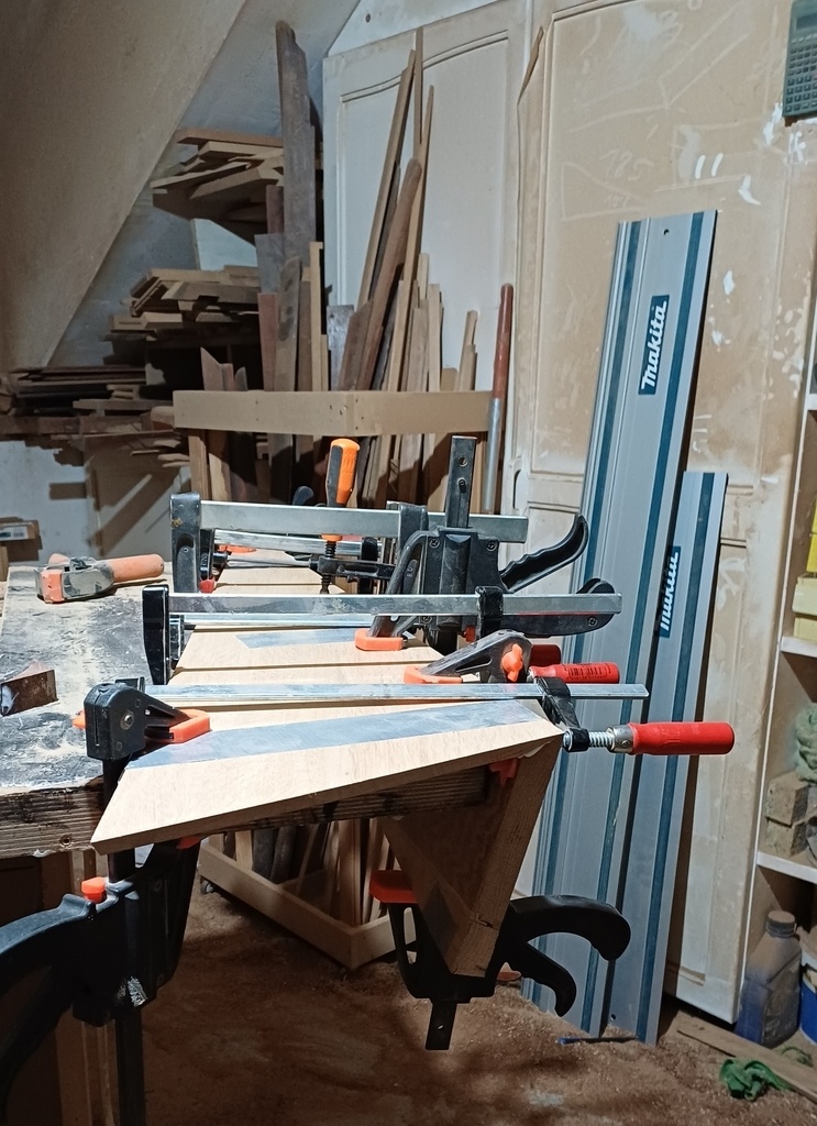 La pièce a été coupée dans une étagère pour laquelle j'ai pas eu le courage de débiter et coller un plateau tout entier.