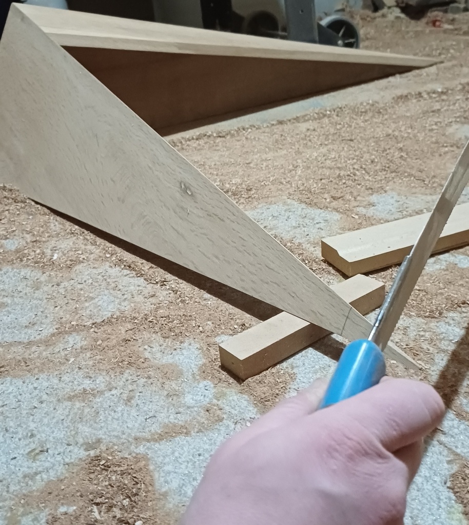 Ci-dessus le bois vertical pour pouvoir couper un des ces angles rentrants.