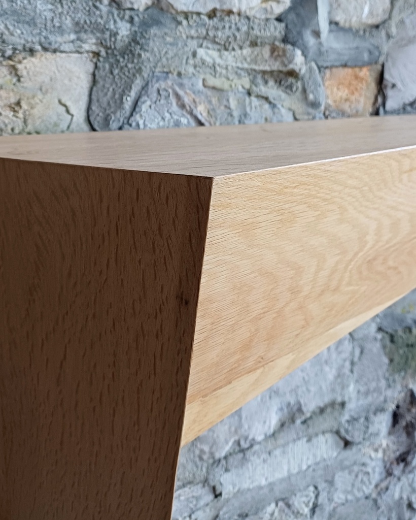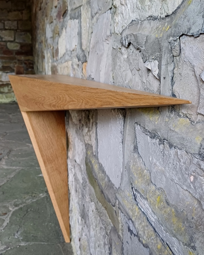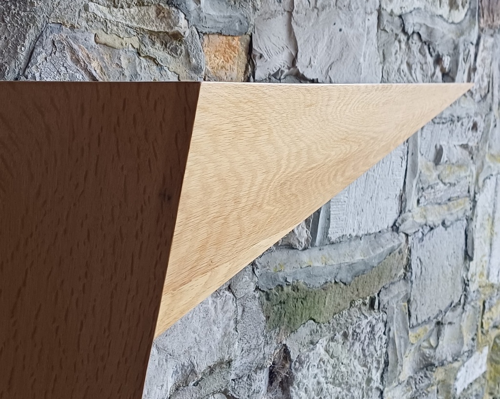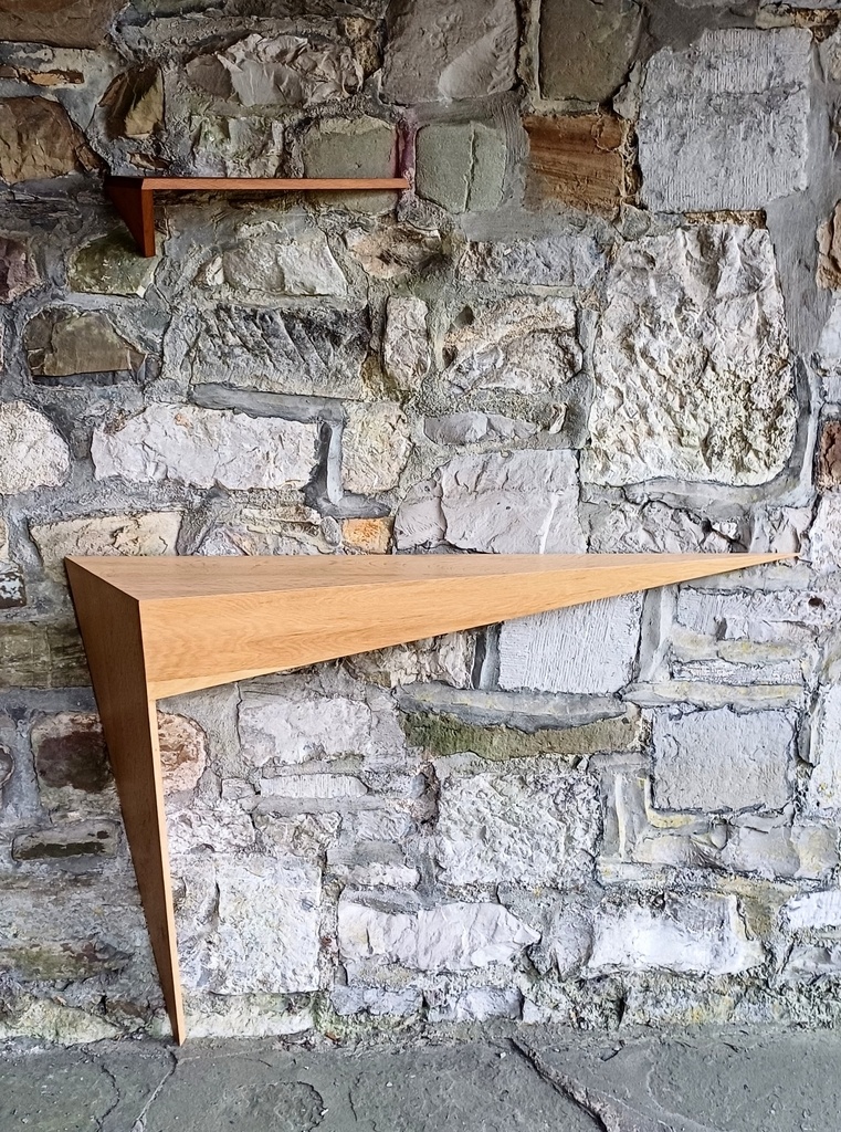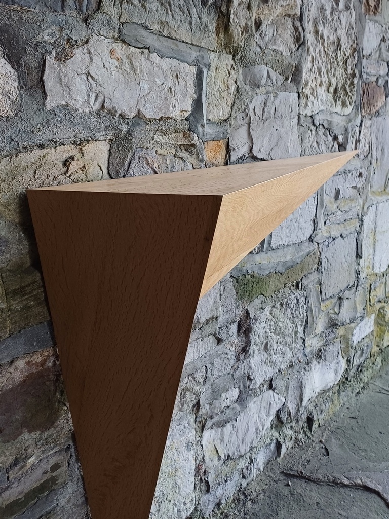 Voici une console murale vaguement inspirée du coin de mon banc géométrique. Après j'ai eu l'idée d'utiliser une forme similaire pour en faire des étagères décoratives. Je les poste bientôt.
