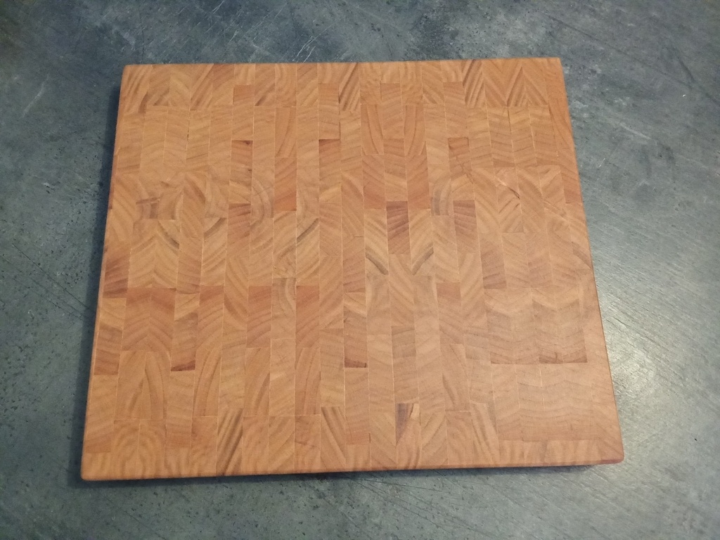 Une planche d essai, un merisier en bordure du champ, l essai du débit à la gruminette. Puis délignage a la scie a ruban, rabottage, collage à la titebond alimentaire. Finition huile minérale.