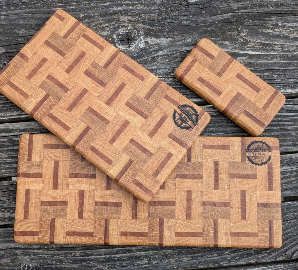 Planchettes en bois de bout.Chêne de récupération uniquement.