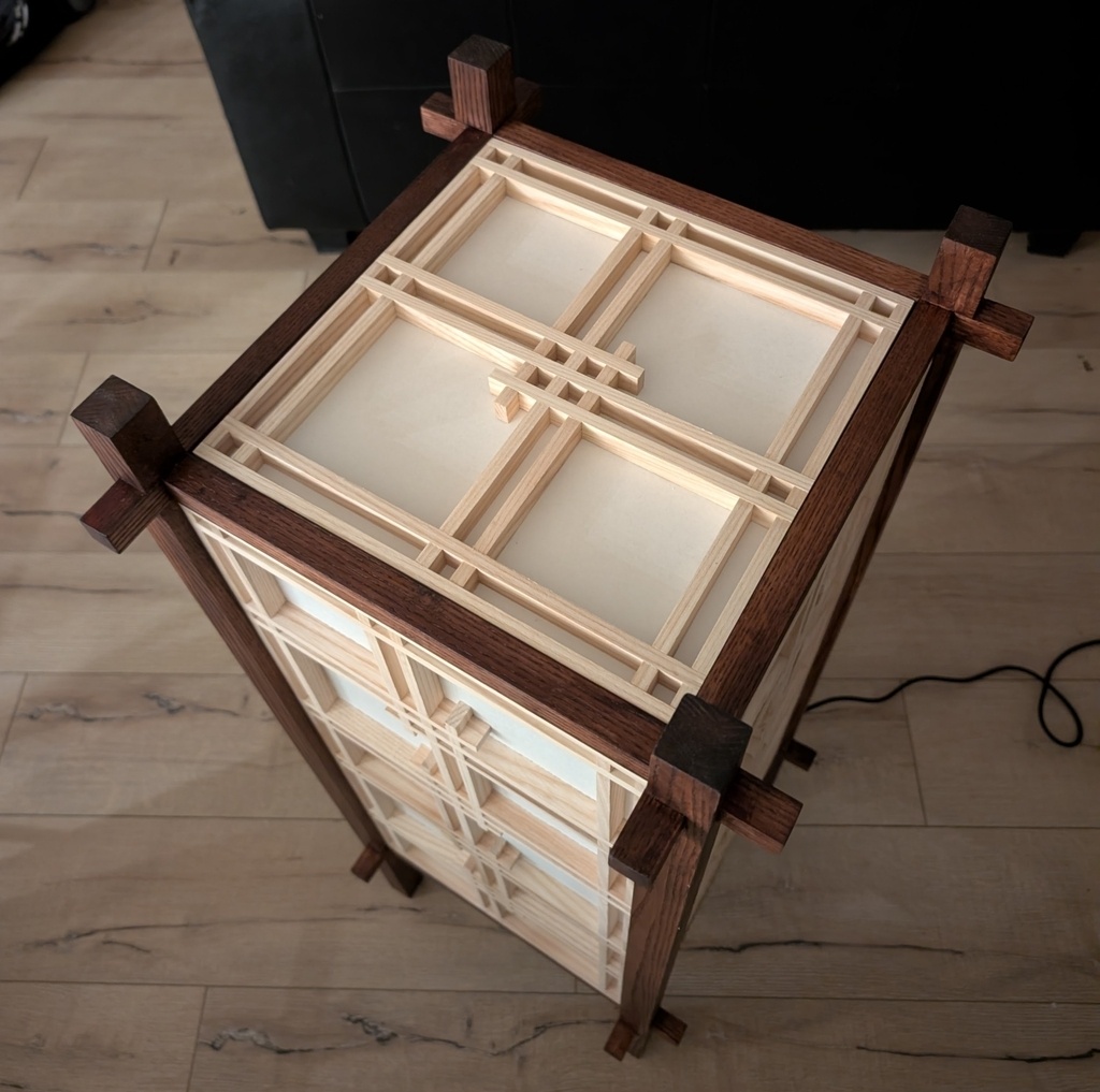 J’ai laissé les panneaux de kumikos brut et décidé de teinter l’ossature.