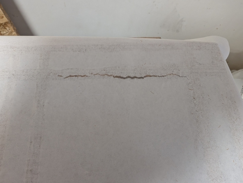 J’ai décidé de faire les collages de papier mouillé. ERREUR, la surface étant beaucoup plus grande que sur mes tests, il y a eu des arrachements à cause du retrait du papier, j’ai du tout poncé et recollé papier sec !!