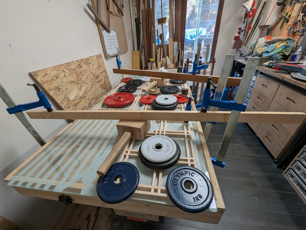 Les Débits. Pour faire les baguettes de 16x8 j’ai raboté le frêne à 16mm puis coupé à 10mm puis raboté les 2 faces coupées à 8mm.