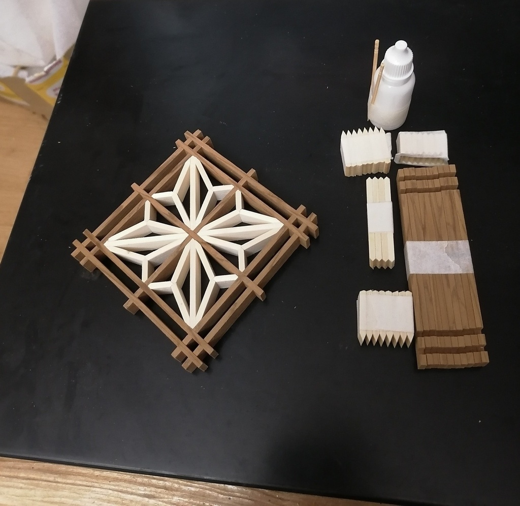 Voici 3 kit de dessous de verre Kumiko, à monter soit même.