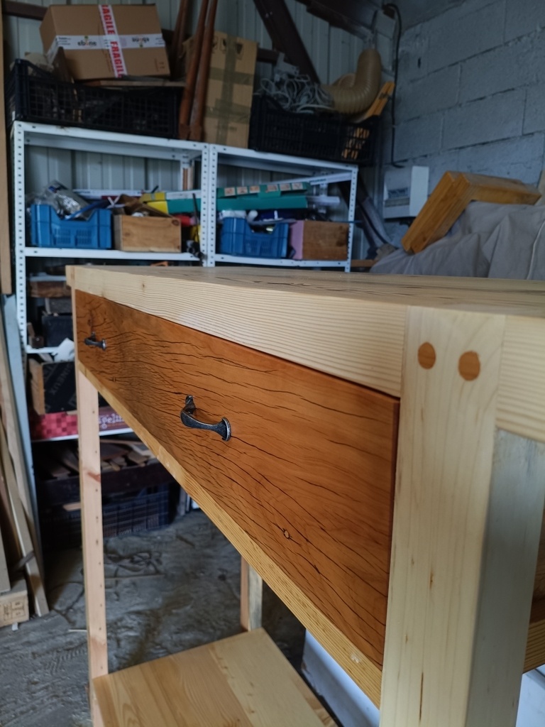 Suite à la création d'une première console, on m'a demandé d'en réaliser une autre dans le même style.(toujours en bois de récupération)