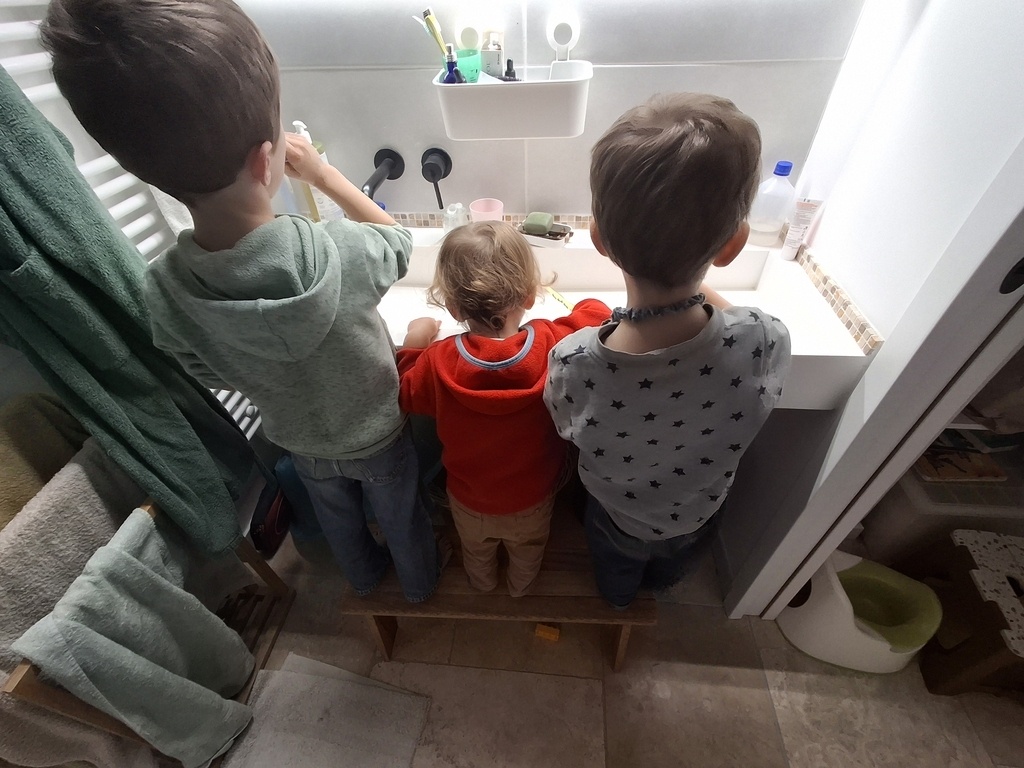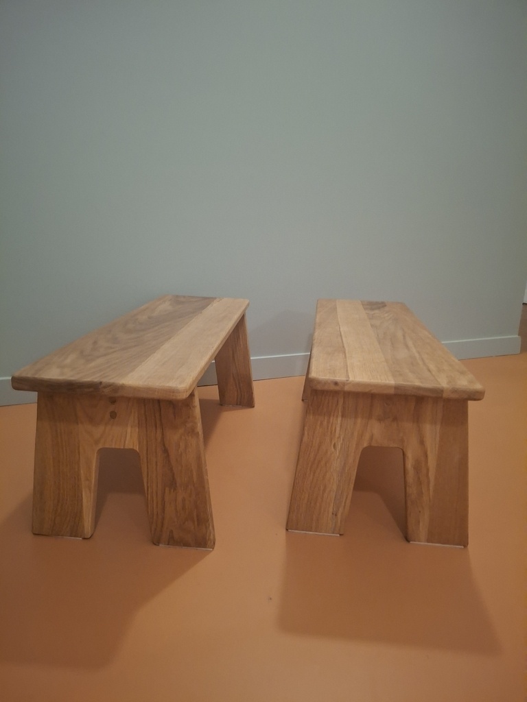 Nous avions besoin d'un banc (un grand marche pied plutôt) pour que nos enfants puissent atteindre le lavabo de la salle de bain et se brosser les dents seuls et qui soit assez large pour 3 enfants. Quitte à en faire un et suite à une suggestion de mon épouse, j'en ai fait deux à peu près certain que le deuxième trouverait son utilité.