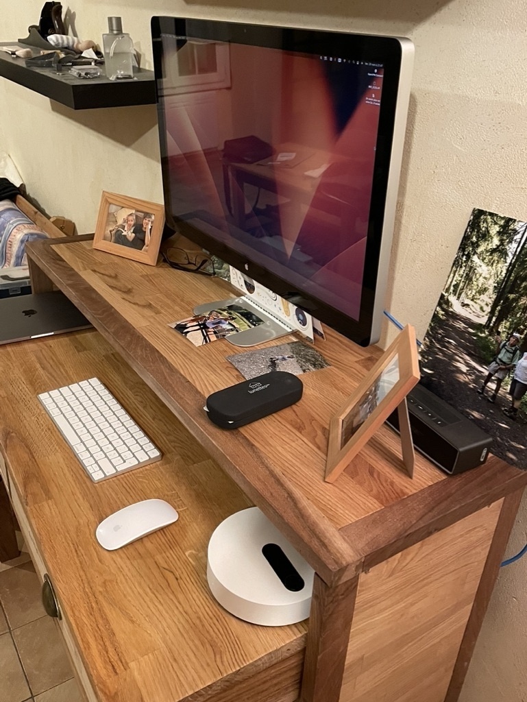 Voici un bureau gigogne réalisé en chêne et noyer, (inspiré du modèle d'Helline) conçu pour remplacer mon premier bureau d'appoint posté il y a 3 ans.