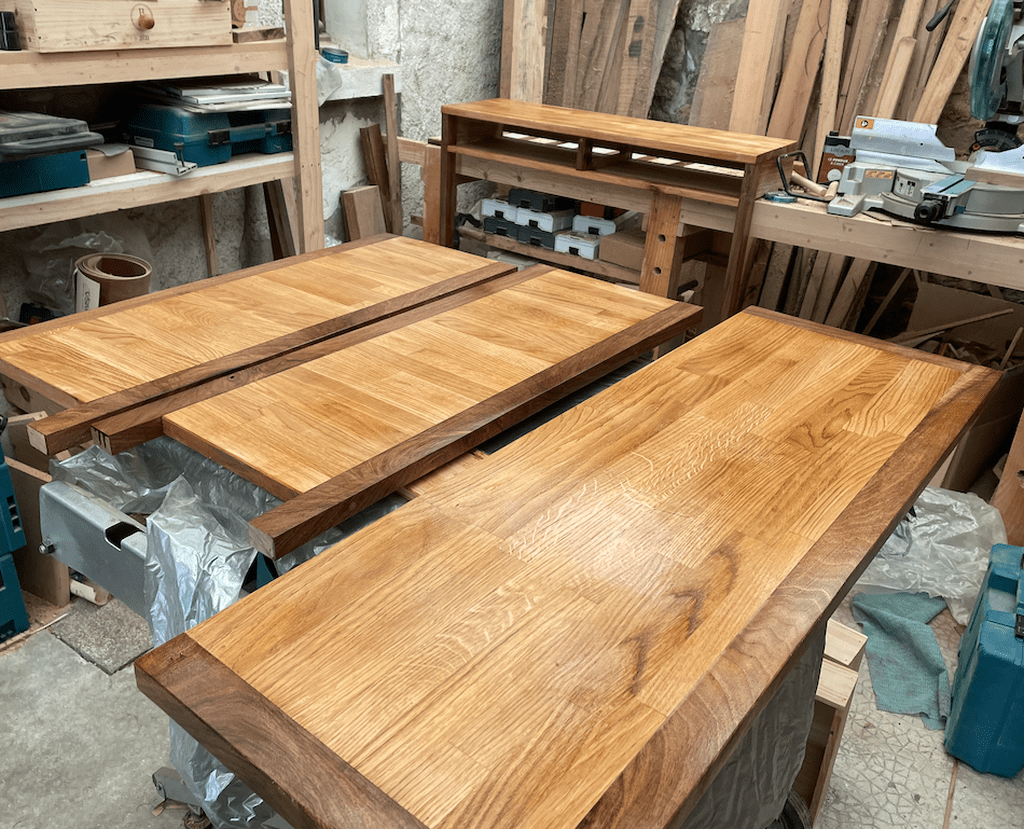 Une couche de Fondur (protection bois) + cire Black Bison pour un rendu naturel et résistant sont les couches de finitions utilisées.