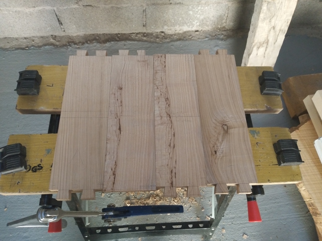 La petite blague vient du fait que j'ai voulu utiliser les chutes des plateaux de frênes utilisés pour faire la plateau de table d'un copain, donc longueur des pièces et quantité contraintes.