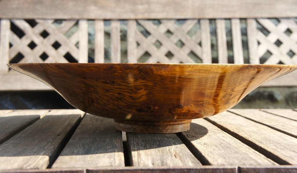 Bonjour, la suite du tournage de "chutes". Une coupe à fruit de 40 cm de diamètre. Le tenon sera enlevé après séchage. Cirage sur bois vert pour "contrôler" les déformations.