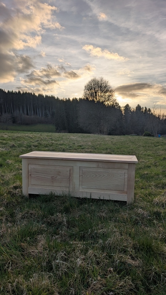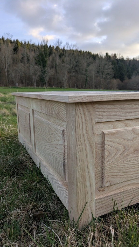 Un banc à chaussures réalisé avec des assemblages tenon-mortaise et des panneaux à plate-bande.