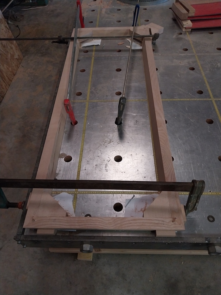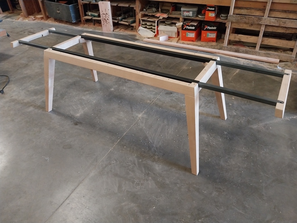 Taille des traverses et longerons, assemblages collés par Domino, avec renforts dans les angles collés + Domino.