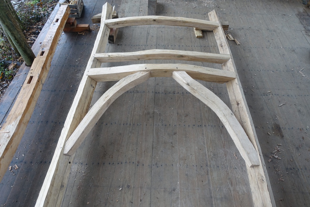 Les bois proviennent de différentes forêts, de 5km à 15km de l'atelier, choisis dans des bois d'éclaircie auprès d'un bucheron du coin. Les poutres sont tout d'abord équarries à la hache et à la doloire.