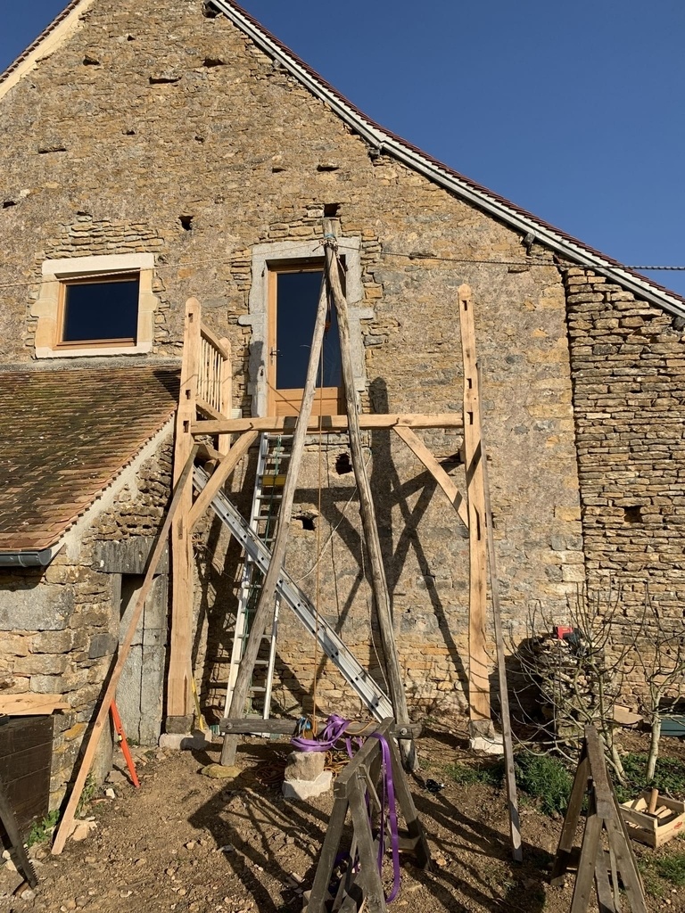 Après le travail en atelier, vient le temps du chantier. L'ensemble de l'ouvrage a été levé au mouflage et à la chèvre.