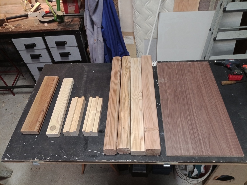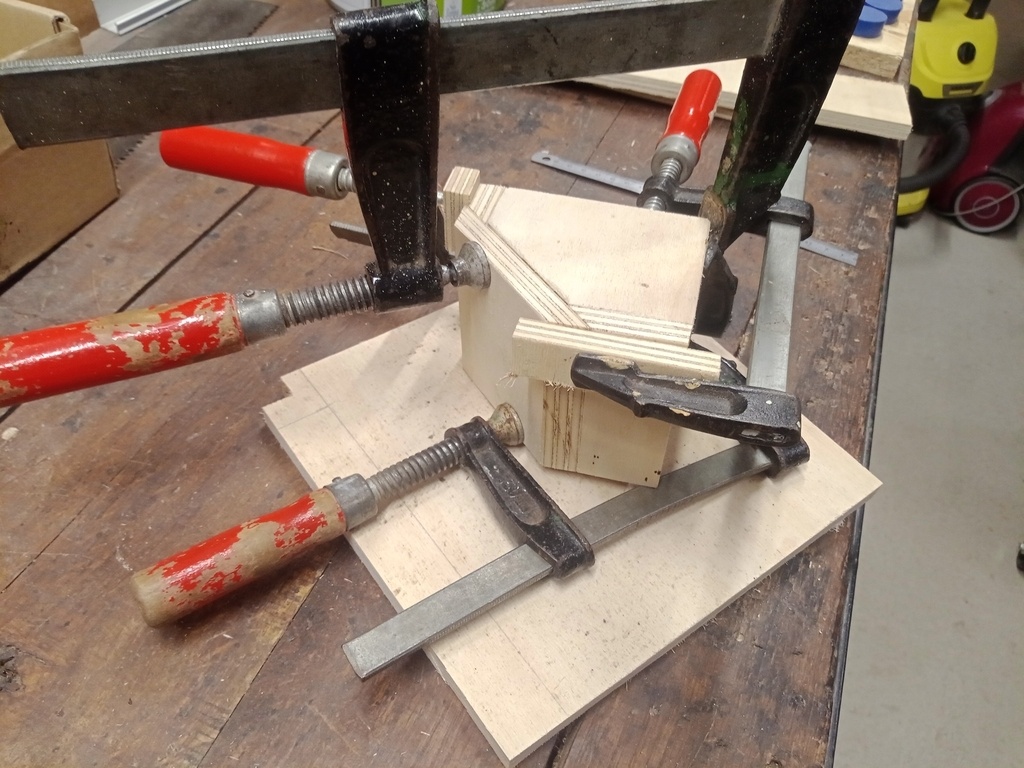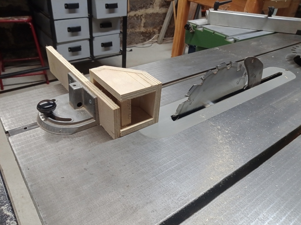 Collage et rectification à la scie sous table pour que ce soit bien d'équerre. Montage final.