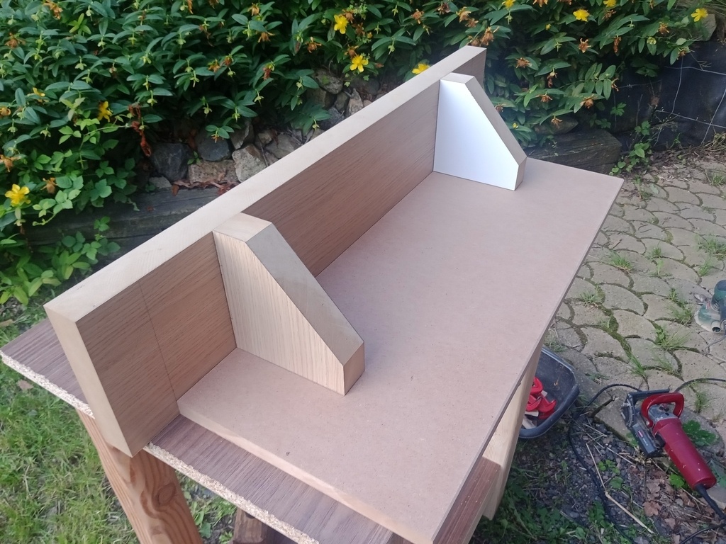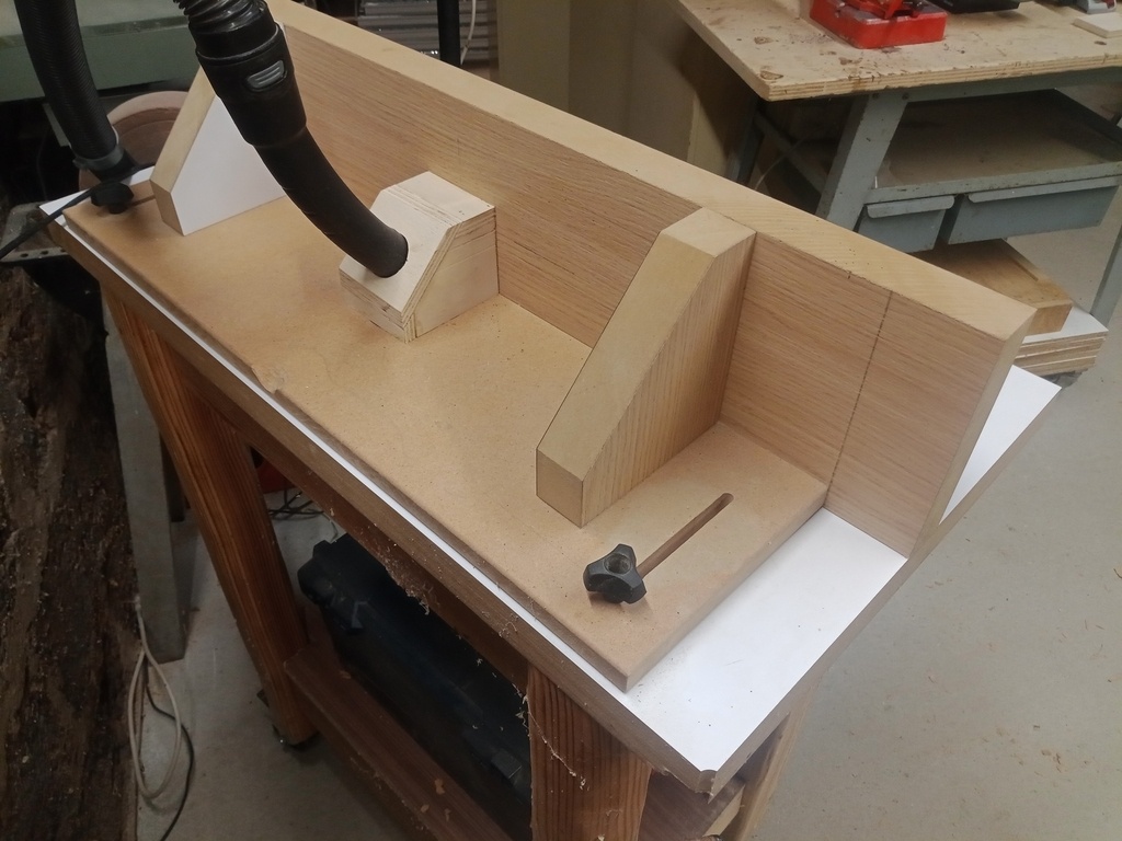 La face du guide et les équerres sont faites avec la même matière que le plateau. L'autre pièce est en médium 19mm.
