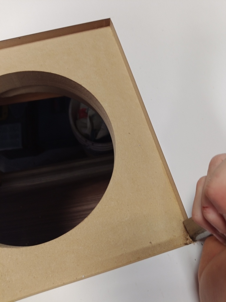 À la gouge, je casse l'arrête arrière du demi-cercle pour qu'il ne gêne par le système d'aspiration.