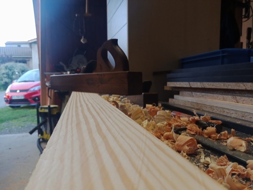 J'ai fait en sorte que la hauteur du plan de travail corresponde à la hauteur de mon établi qui est à côté.