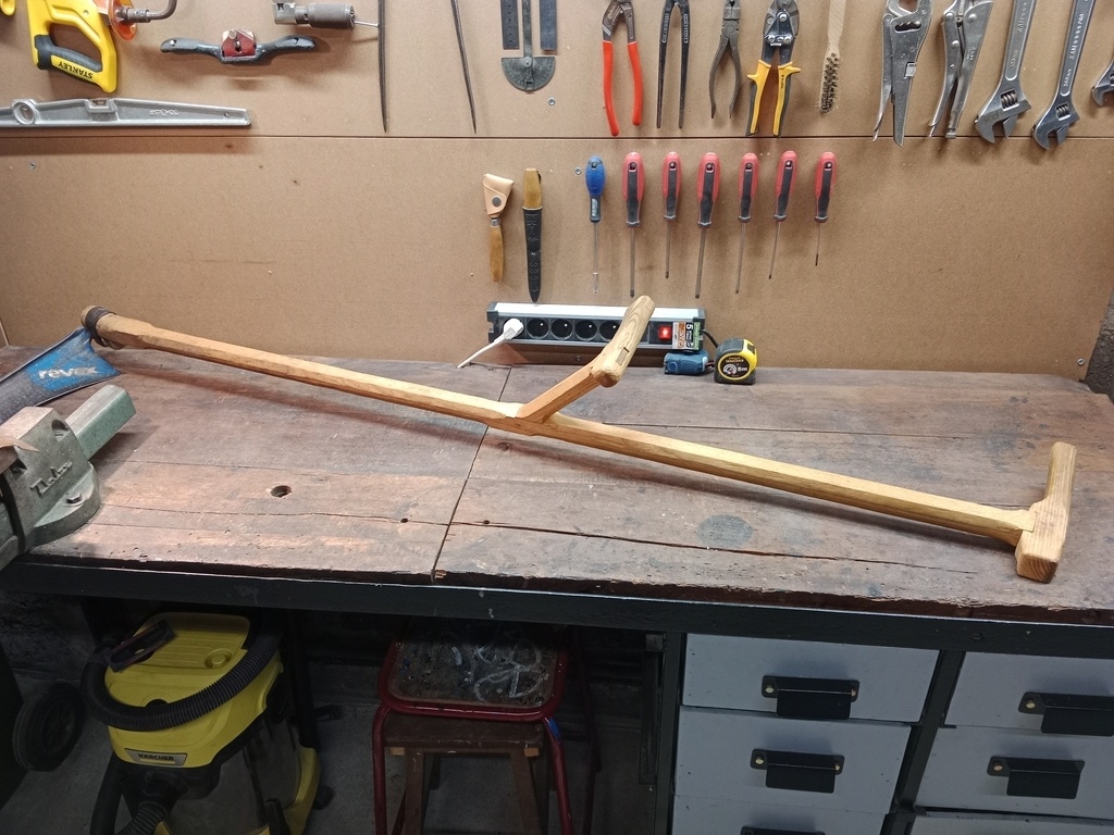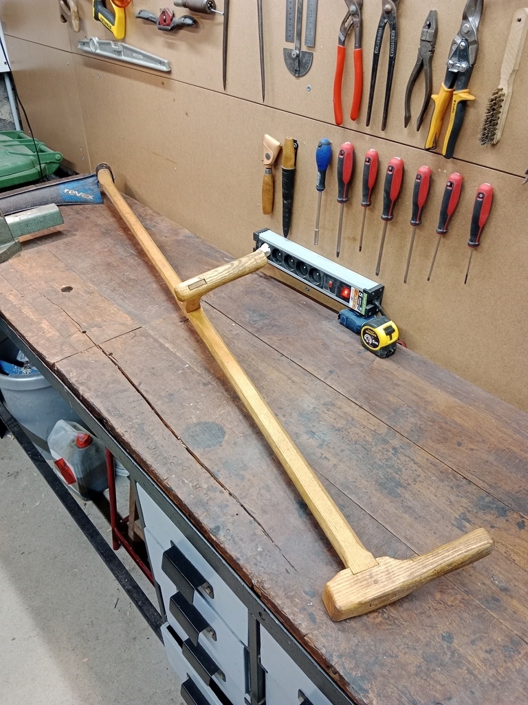 Je présente maintenant un projet que j'ai réalisé il y a maintenant presque 5 ans, alors que j'avais 13 ou 14 ans. Ça a été le tout premier de mes "vrais" projets de menuiserie. À l'époque passionné de fauchage, toutes les faux que j'avais étaient trop petites pour moi. Je n'avais pas envie d'en acheter une neuve, et en plus ça me faisait un joli défi à relever !