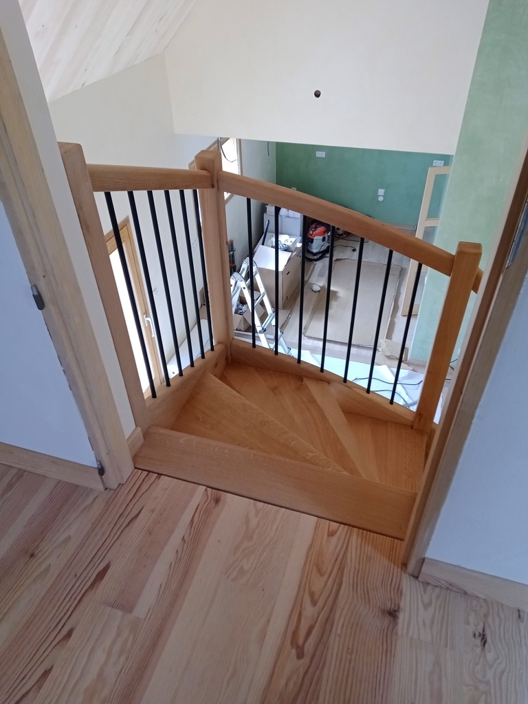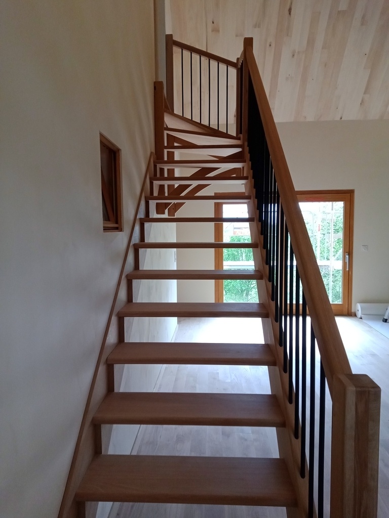 Un escalier réalisé il y a 2 ans déjà.On à essayé de faire un ouvrage assez aérien car la pièce est petite.